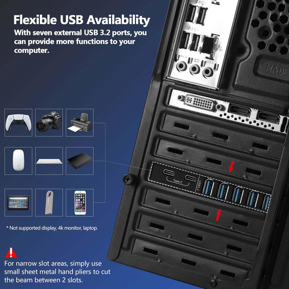 Pcie Usb 3.2/3.1 Gen 2 Card Superspeed 10Gbps Bandwidth 7 Ports (2X Usb C 5 Usb A) Expansion Card Usb C Pc Card Internal Usb Port Hub For Windows 10/8/7 And Mac Os 4.1/5.1 Above