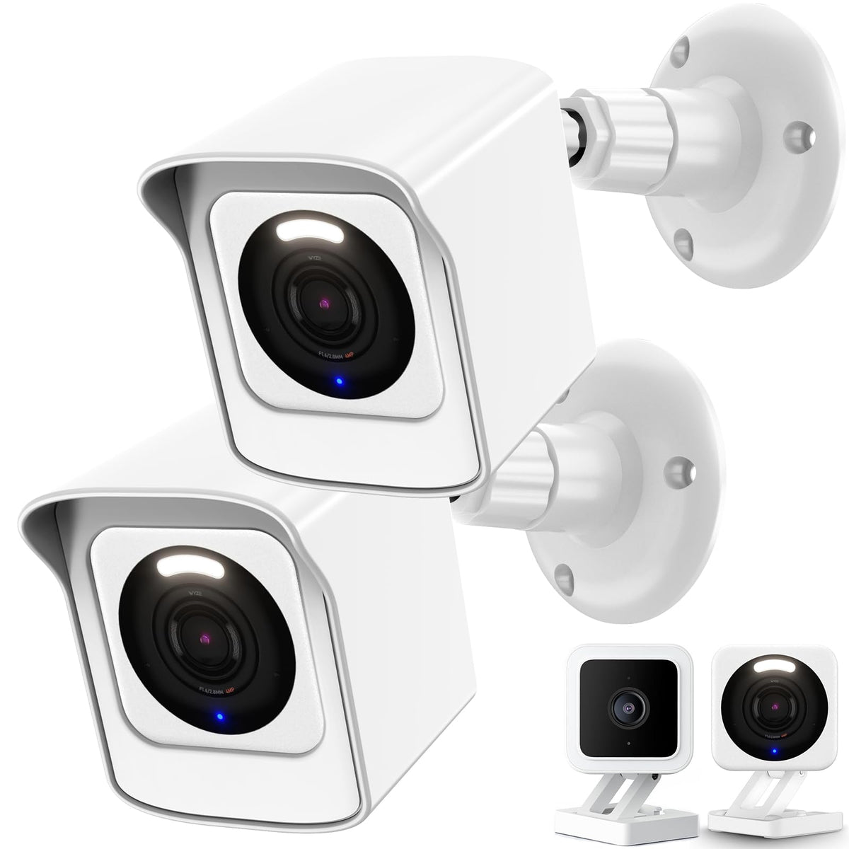 Pef Mount For All New Wyze Cam V4/Cam V3, Weatherproof Protective Cover And 360 Degree Adjustable Wall Mount Solid Housing For Wyze V4 And V3 Outdoor Indoor Smart Home Camera System (White, 2 Pack)