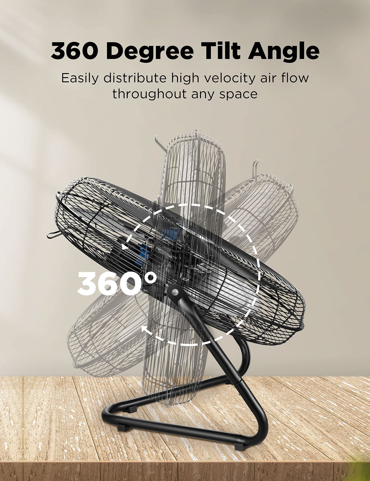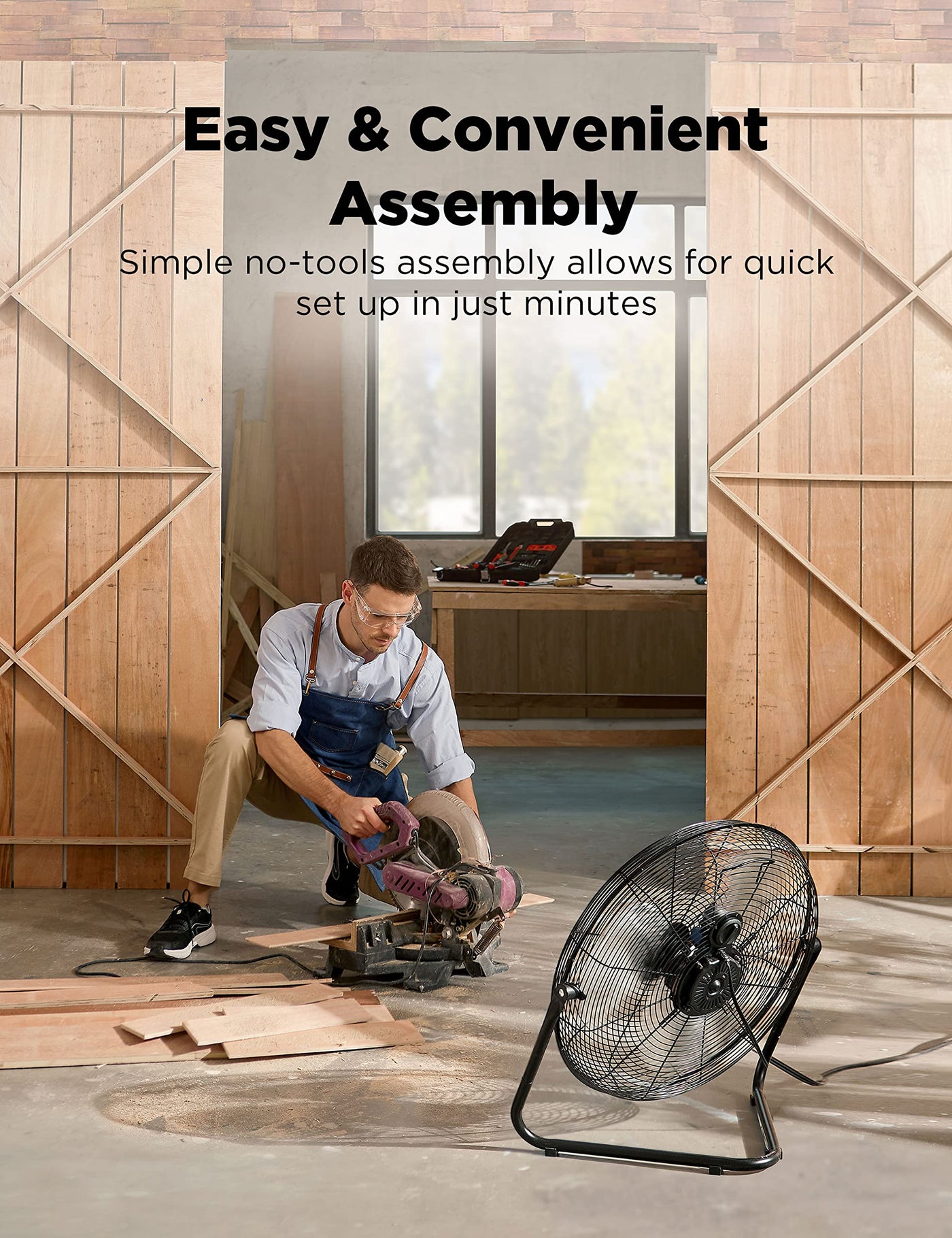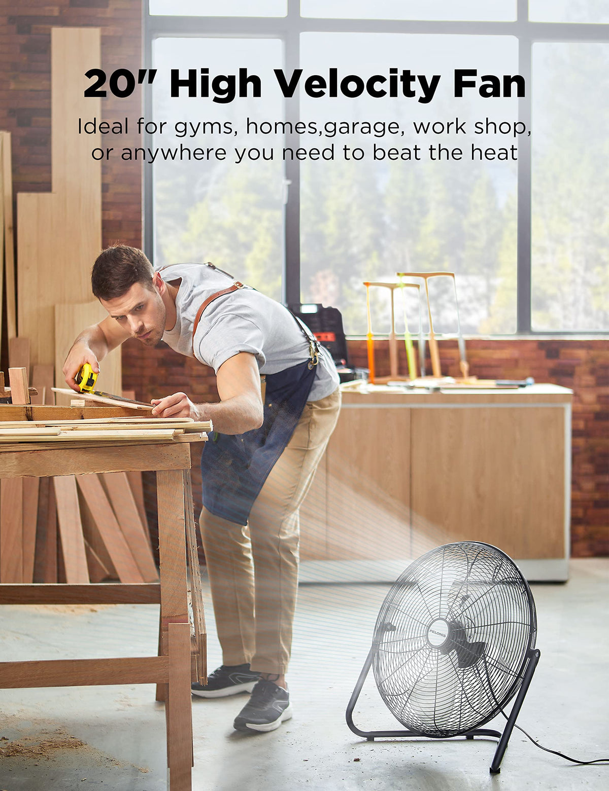 Pelonis Fan 20 Inch Floor Fan | Heavy Duty All Metal High Velocity Floor Fan With 3 Speeds| Adjustable Tilting Head | Quickmount