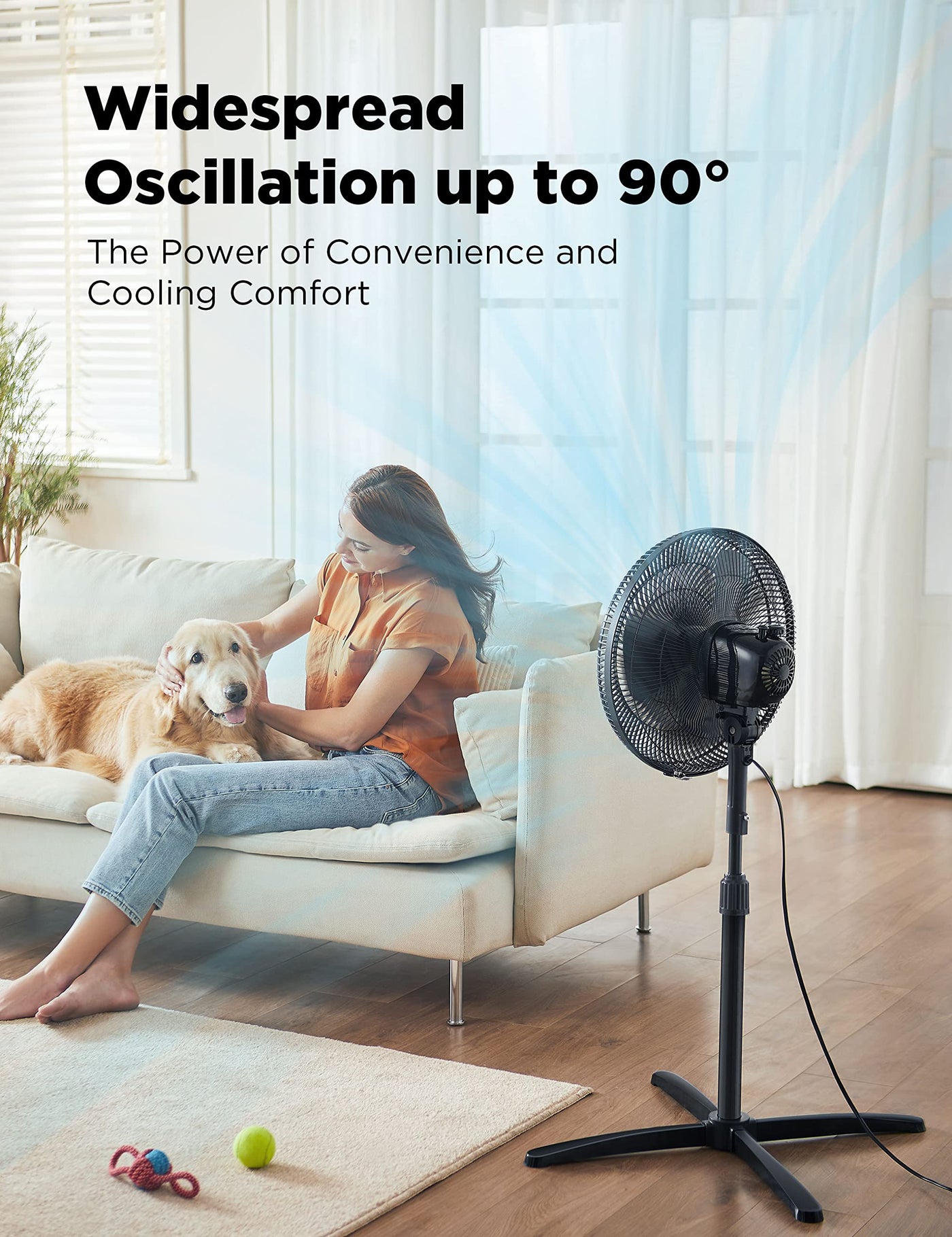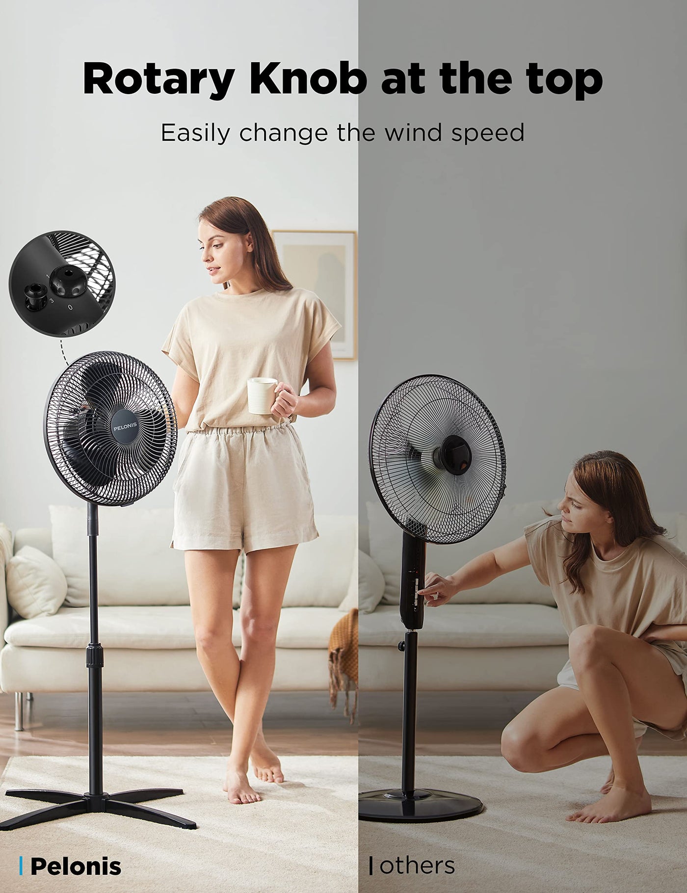 Pelonis Fan Portable 16 Inch Pedestal Fan| 3 Speed| 90 Oscillation| Adjustable Height| Standing Floor Fan For Living Room, Bedro