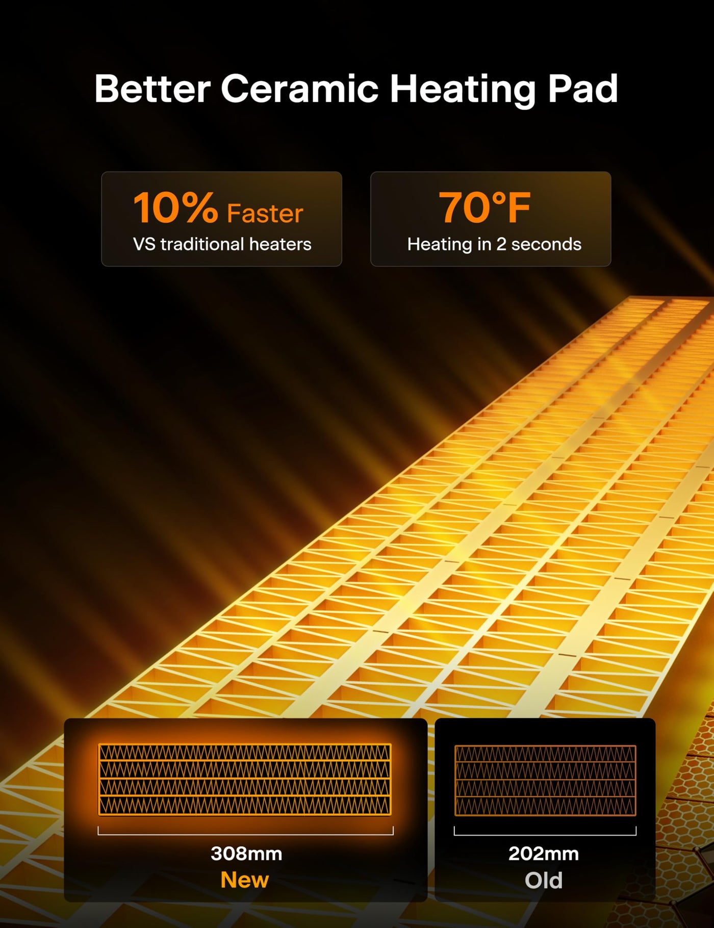 Q: How quickly does the PELONIS Space Heater warm up a large room?A: The PELONIS Space Heater features an enlarged 308mm PTC heating element that provides rapid warm-up in just 3 seconds, making it ideal for quickly heating large rooms up to 300 ft².