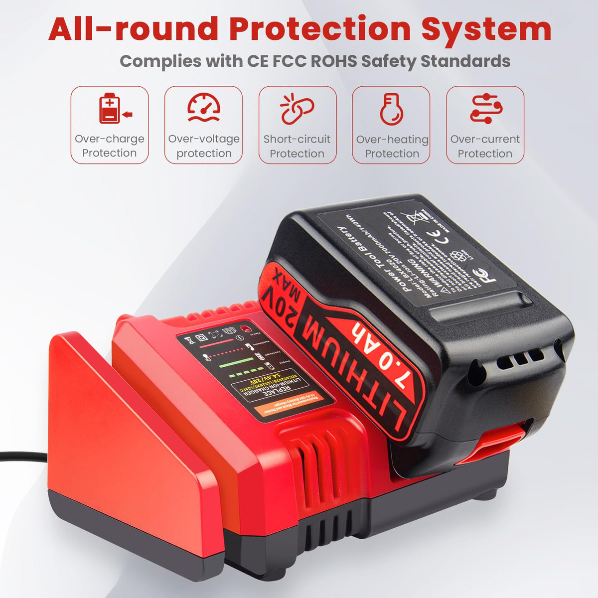 Q: How fast does the PENGJBATTER charger work compared to other chargers?A: This charger features a 2 Amp output, allowing for quicker charging times compared to standard chargers, effectively reducing downtime for your tools.