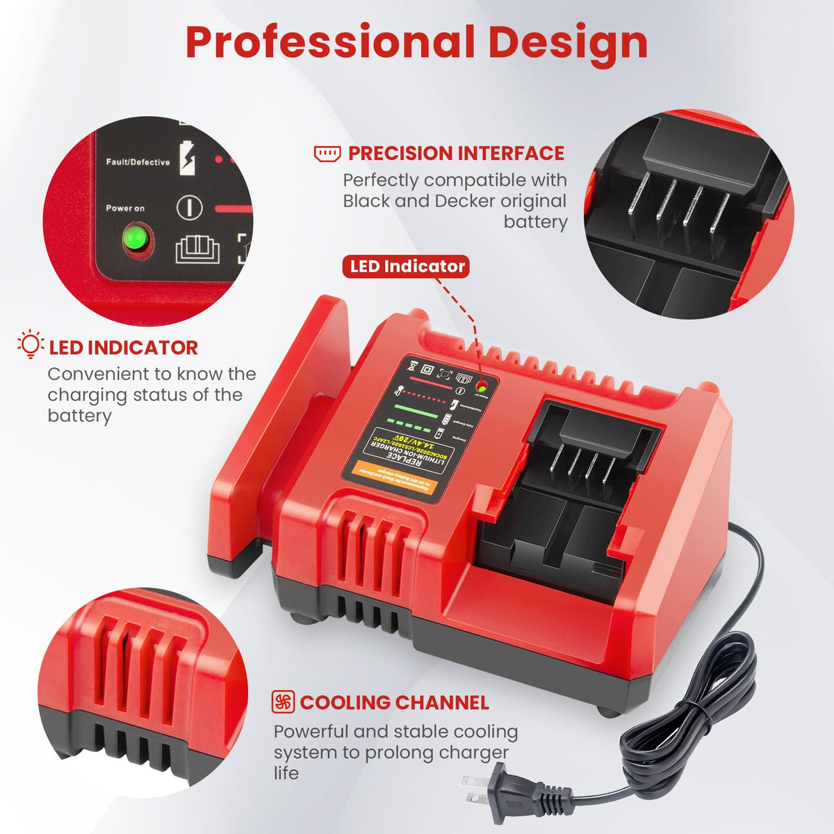 Pengjbatter L2Afc 20V Super Fast Charger For Black And Decker 20V Charger, 2 Amp, Compatible With Black And Decker 20 Volt Lithi