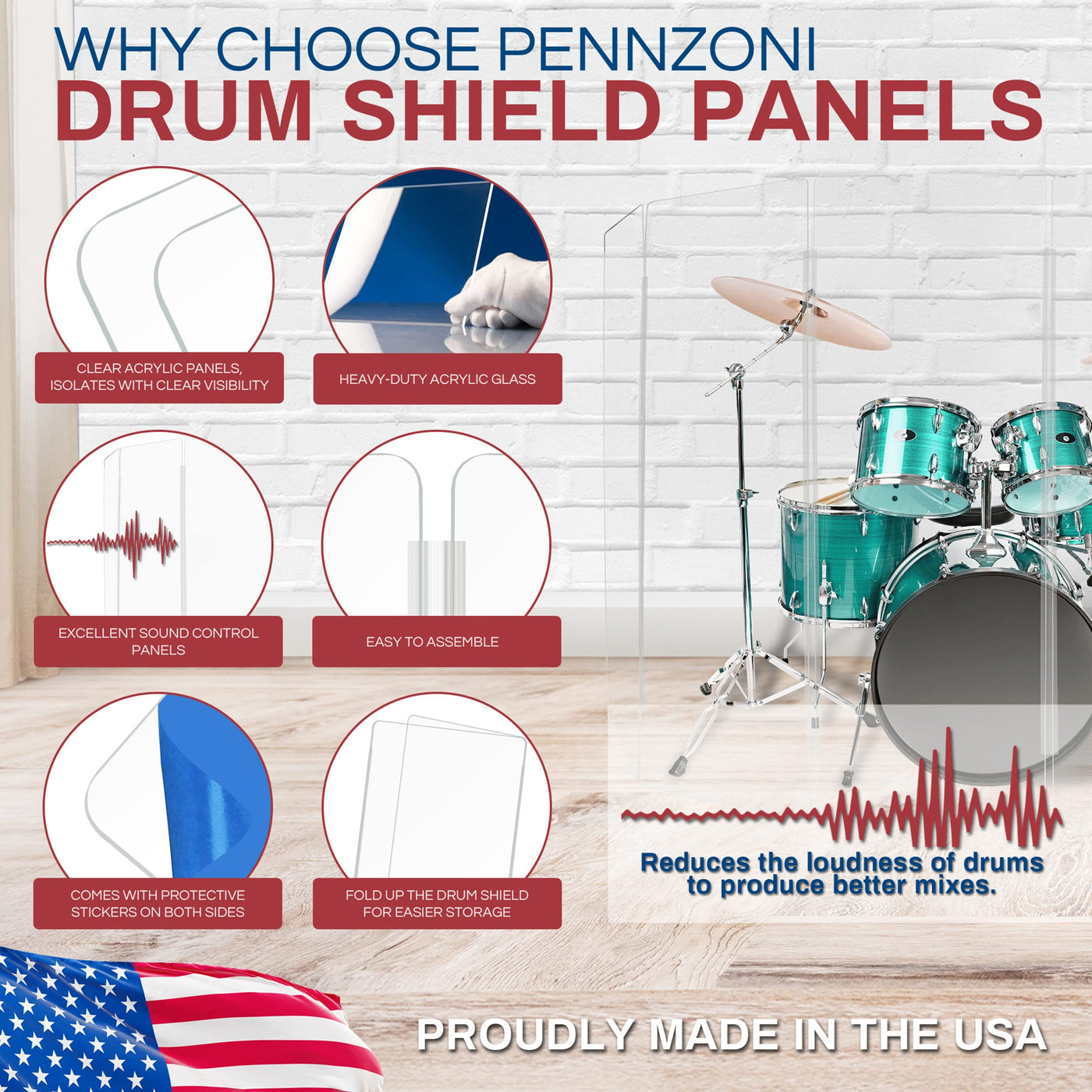 Why Choose The Pennzoni Drum Shield 1.) 100% Made In The Usa 2.) Clear Acrylic Panels, Isolates With Clear Visibility 3.) Made Of Premium-Quality Acrylic Glass 4.) Excellent Sound Control Panels 5.) Plastic Hinges That Hold Panels Firmly 6.) Easy To Assemble 7.) Comes With Protective Stickers On Both Sides