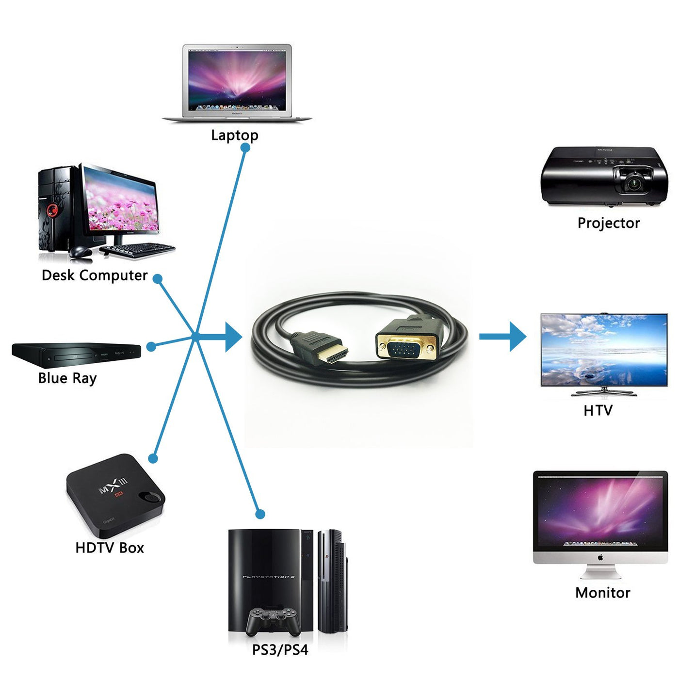 Peotriol Hdmi To Vga Cable, 1080P Hdmi Male To Vga Male M/M Video Converter Cord Adapter Compatible With Hdmi Desktop, Laptop, D