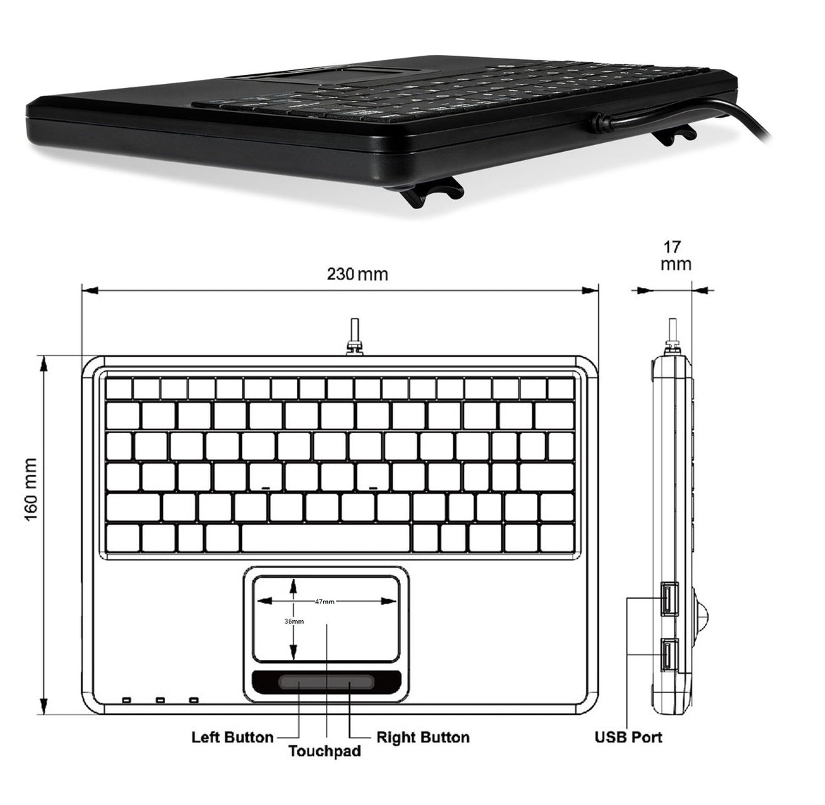 Perixx 11630 Periboard 510H Plus Teclado Espaol Usb Con Cable, Con Touchad Multi Gestos Integrado Y 2 Entradas Usb Dimensi