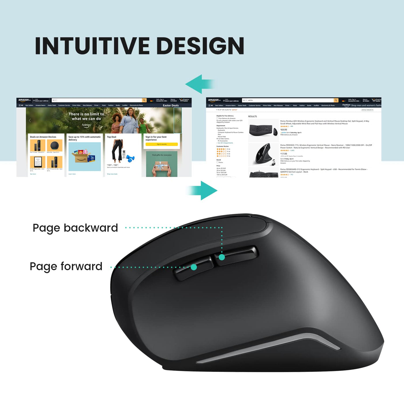 Perixx Perimice 804 Bluetooth Vertical Mouse, Bluetooth Connection For Windows And Android System, Works Without Usb Receiver, B
