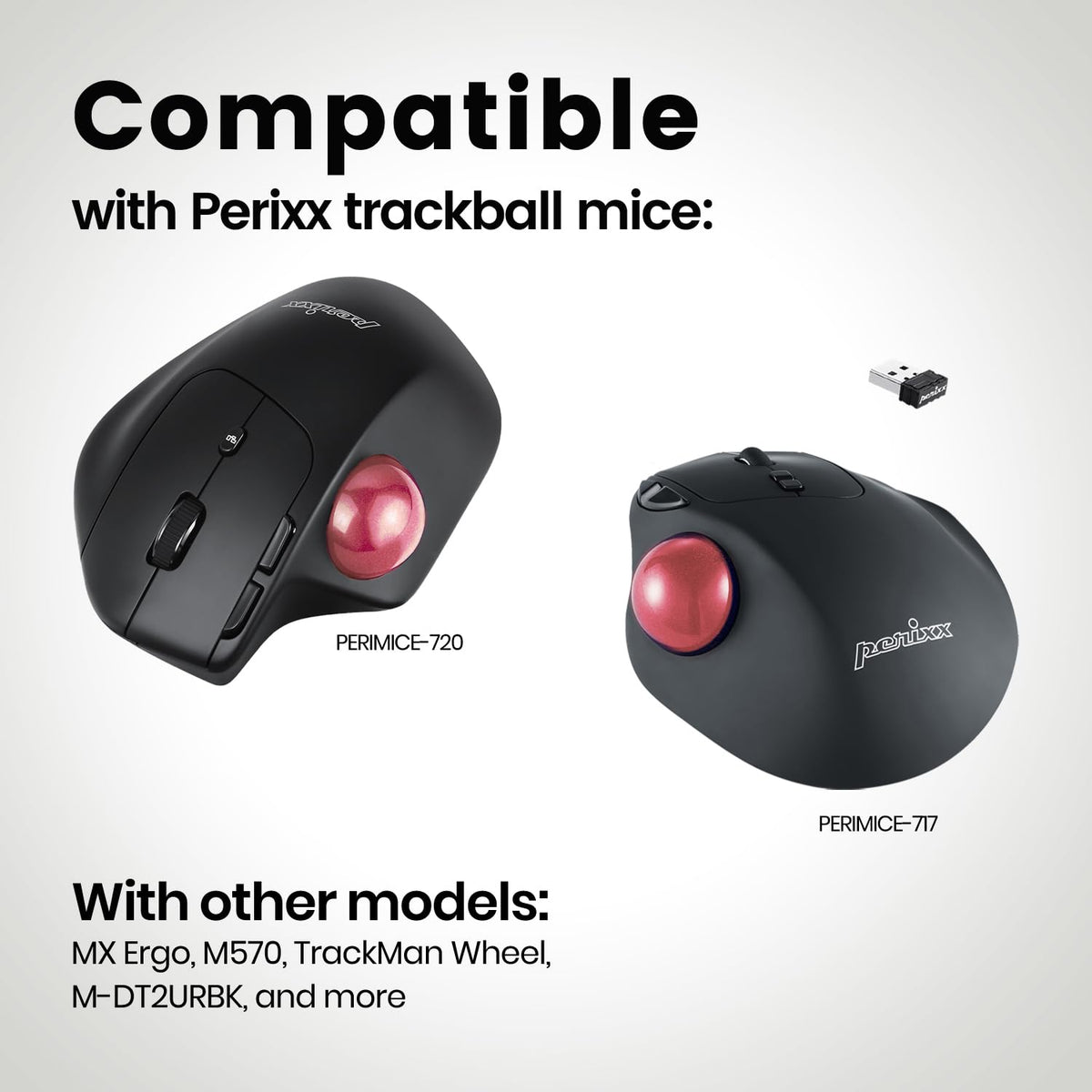 Q: What trackball mice are compatible with the Perixx PERIPRO-303 replacement ball?A: The Perixx PERIPRO-303 replacement ball is compatible with various trackball mice, including the PERIMICE-517, PERIMICE-520, PERIMICE-717, PERIMICE-720, MX Ergo, M570, and Cordless TrackMan Wheel, among others.