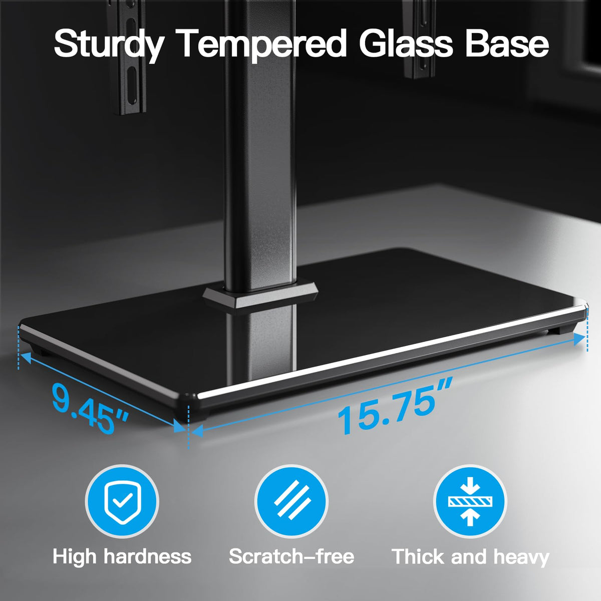 Compatibility & Durability Design-Universal Tv Stand Fits Most 32''- 65''(Including 32''37''39''40''42''43''48''49''50''54''55''60''65'') Tvs Holds Up To 88 Lbs, Vesa(Mounting Hole Pattern): 100X100Mm (4''X 4'') - 400X400Mm (16''X 16''). Our Tabletop Tv Stand Is Compatible With Sony/Samsung/Vizio/Sharp/Tcl/Hisense/Lg Tvs In Living Room,Bedroom,School,Office And So On. Solid Steel Pillar Provides Stable Support For Your Tv, Well Made And Good Looking. | Height Adjustment & Cable Management-Easy To Adjust The Height Of Tv, This Tv Stand Has 6 Mounting Height Options So You Can Get The Correct Viewing Height You Are Looking For. Heighten Your Plenty Of Space To Place Soundbar Or Place Your Tv At The Lower Level To Keep It From Tipping. Cable Holders On The Back Are A Big Bonus. Keep Your Cable And Accessories Organized And Neat. | Super Simple One-Piece Installation-This One-Piece Table Top Tv Stand Comes With Easy-To-Use Instructions And All Necessary Accessories For Quick And Easy Installation Within 10 Minutes. Unnecessary To Put Holes In The Wall To Mount It And Conveniently Move It To Fit Where It Needed To Go! | Tempered Glass Base & Safety For Kids/Pets-Black Tempered Glass Base Gives An Added Touch To Your Home Theater System While Providing Security And Stability When Mounting Your Devices. High-Quality Steel Construction Ensures Safety, Protecting The Television From Your Kids/Pets So It Would Not Knock Them Over. | World-Class Customer Service-Our Tv Stand Base Includes Friendly Us-Based Customer Support. If You Have Any Problem Please Feel Free To Contact Us !