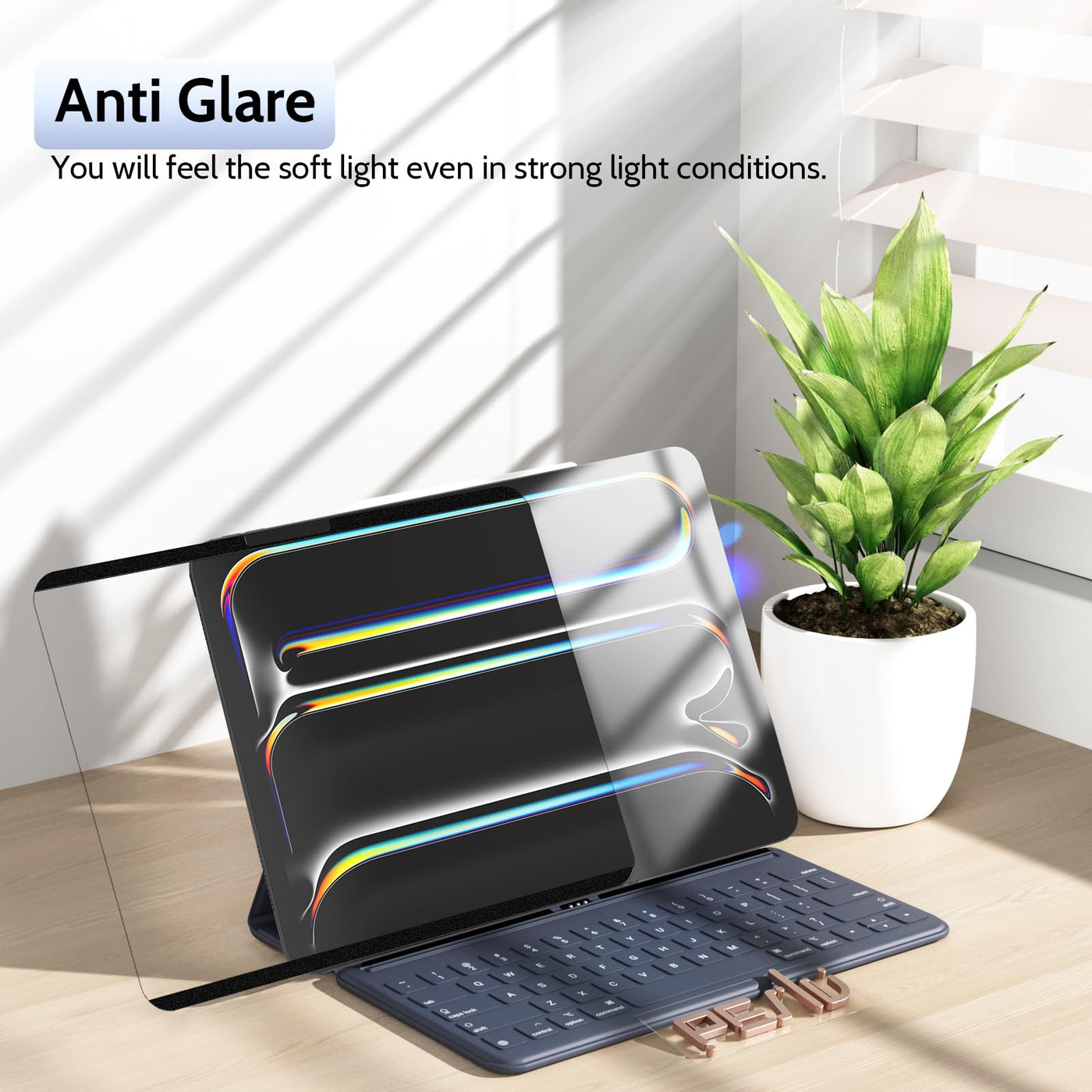 Q: How does the installation of the Peslv Paperfilm work?A: The Peslv Paperfilm features an advanced magnetic installation method. It uses a super strong magnetic strip on the top and bottom, allowing for quick and bubble-free installation. Simply align the protector with your iPad screen, and it will attach securely without any glue.