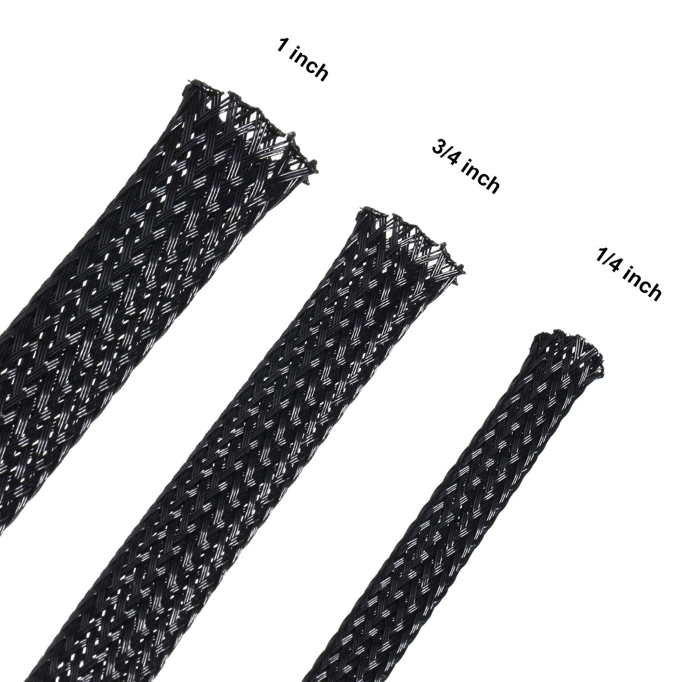 50 Feet Black Pet Expandable Braided Cable Sleeve, Wire Sleeving With 127 Pieces Heat Shrink Tube For Audio Video And Other Home Device Cable Automotive Wire (1/2 Inch, 1/4 Inch, 3/8 Inch) Features: Our Cable Sleeving Protects And Prolongs The Life Of Wires. Durable And Easy To Install. Specifications: Material: Pet Color: Black Size: 1/2 Inch, 1/4 Inch, 3/8 Inch Package Includes: 1 X Pet Expandable Braided Cable Sleeve (16 Feet X 1/2 Inch) 1 X Pet Expandable Braided Cable Sleeve (16 Feet X 1/4 Inch) 1 X Pet Expandable Braided Cable Sleeve (16 Feet X 3/8 Inch) 127 X Heat Shrink Tube