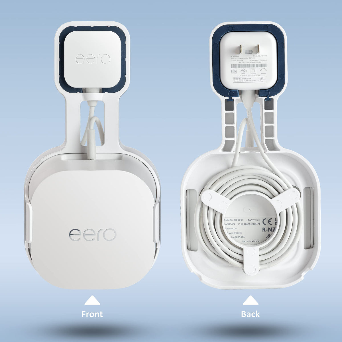 Q: How do I install the wall mount for my EERO 6+ router?A: Installation is simple and requires no tools. Just place your EERO 6+ router and power adapter into the wall mount, wrap the cord into the designated groove, and you're done in under 5 minutes.