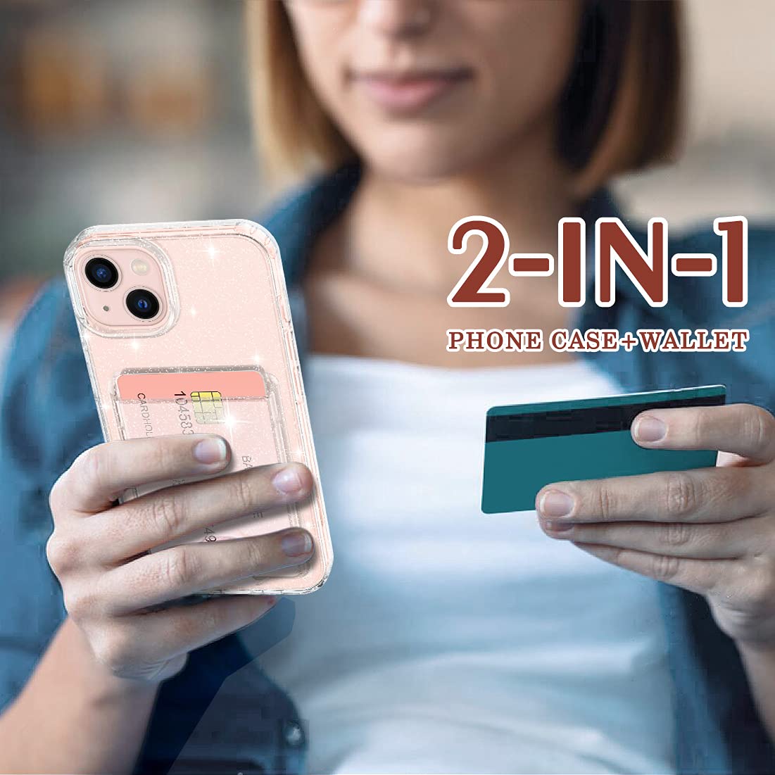 Petocase For Iphone 13 Wallet Case,Card Holder Slot Ultra Bling Slim Clear Flexible Tpu Soft Silicone Protective Phone Case Cove