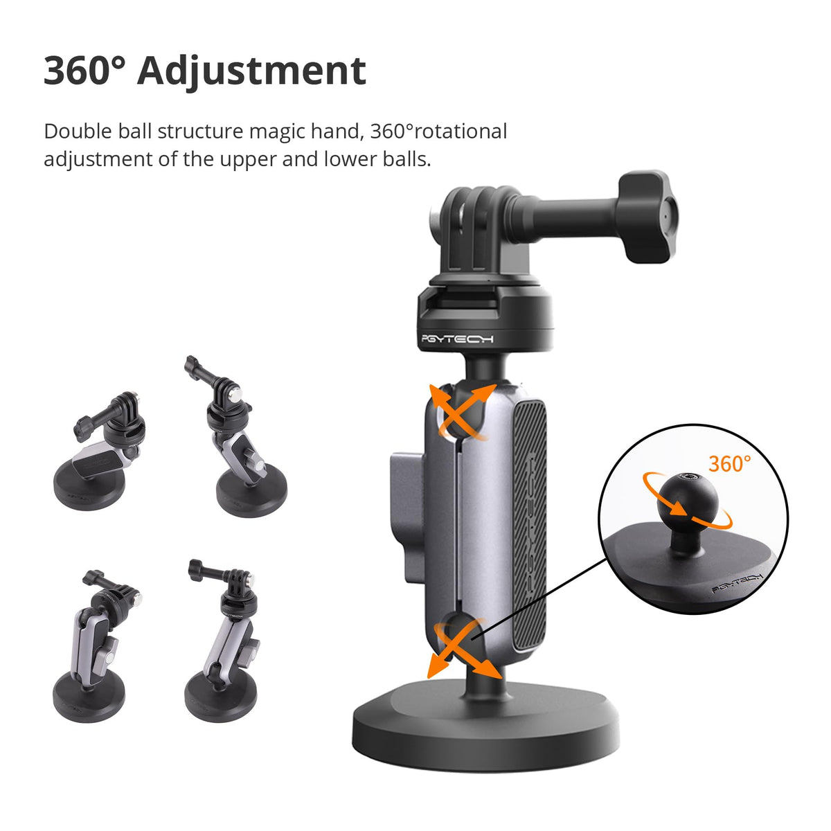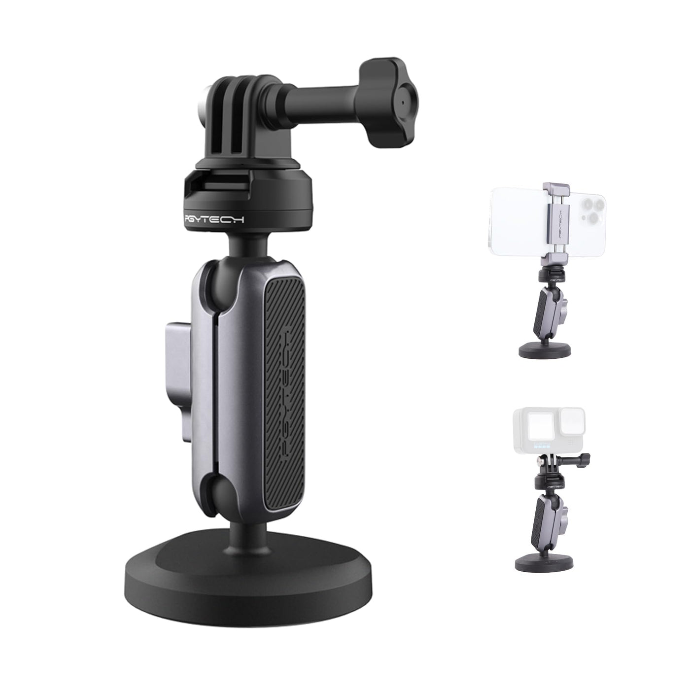 Pgytech Caplock Magnetic Camera Mount Compatible For Dji Osmo Action4/3/2, Gopro 10/9/8, Osmo Pocket 2, Insta360, Double Ball Head Mechanism With 1/4' 20 Standard Thread Adapter