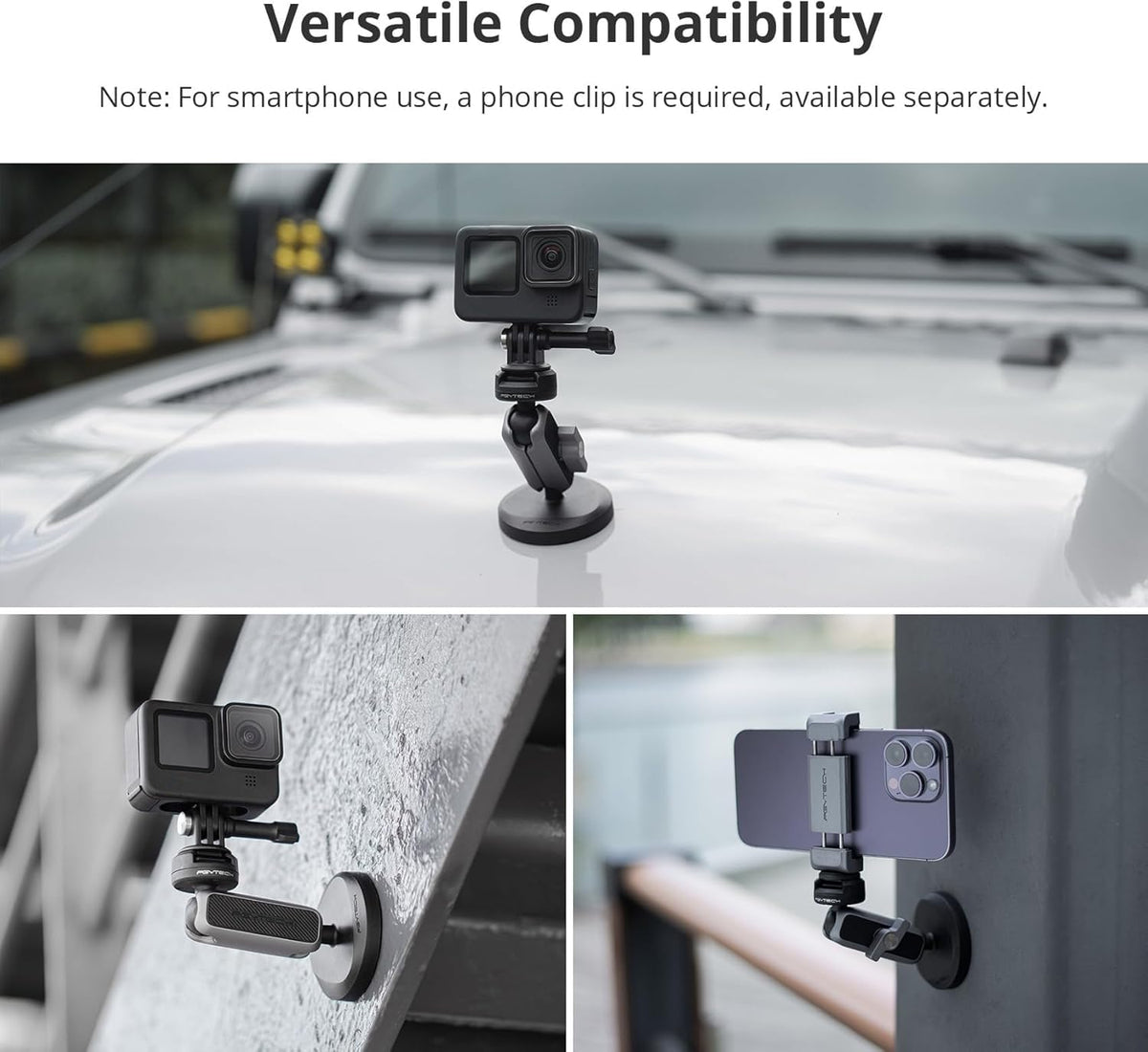 The Caplock Action Camera Magnetic Mount Is Used For Mounting Action Cameras And Smartphones For Creative Shooting On Metallic Surfaces Like Vehicles, Railings And Fridges. Dual Ball Head Construction Features 360� Tilting And Rotating Capabilities, Effortlessly Adjusted Via A Wingnut. The Quick-Release Mechanism And Security Lock Ensure Secure And Stable Installation. Foldable And Compact, It Is Designed For Effortless Portability And Storage. And With Its Action Camera Adapter And 1/4' Adapter, It Offers Broad Compatibility With Action Cameras And Smartphones. Compatible For Dji Osmo Action4/3/2, Gopro Hero 11/10/9/8, Osmo Pocket 2, For Insta 360 One R/One X3/X2, For Sargo, Sony Action Cameras, Xiaoyi Action Cameras, Etc.