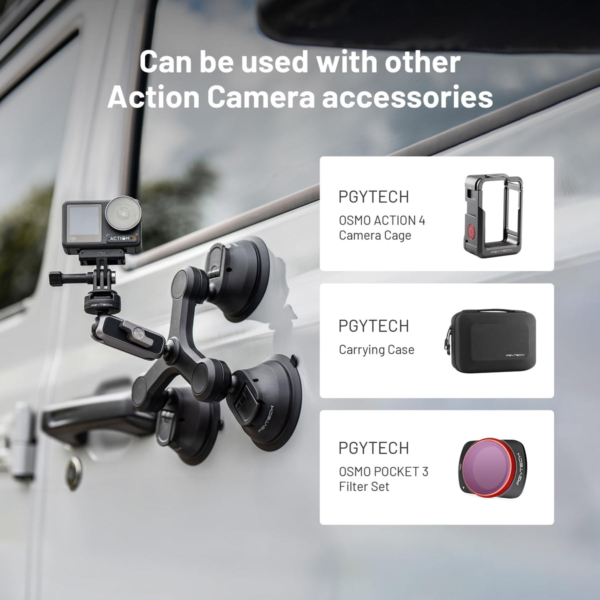 Pgytech Caplock Triple Suction Mount Compatible For Dji Osmo Action 4/3/2, Gopro Hero 11/10/9/8 With 1/4' 20 Standard Thread Adapter, Action Camera And Smartphones For Insta360 One Rs/R/One X3/X2