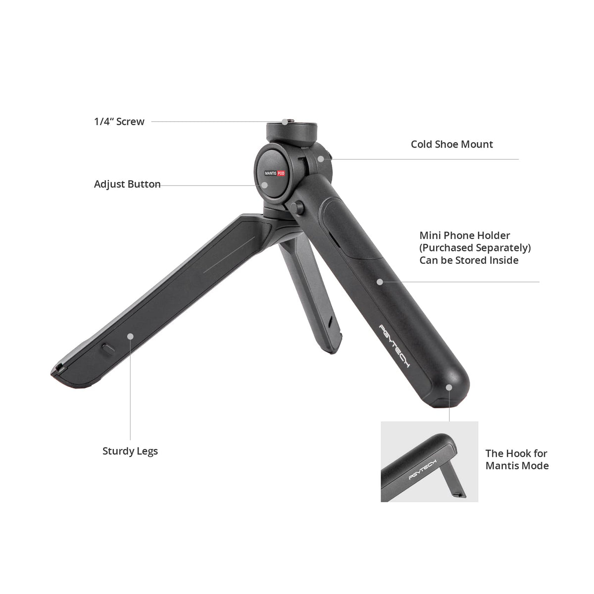 Pgytech Mantispod 2.0 Mini Camera & Cell Phone Vlogging Tripod | 5 Modes Small Travel Flexible Dslr Pocket Stand | Video Vlog Desktop Shooting Selfie Mount