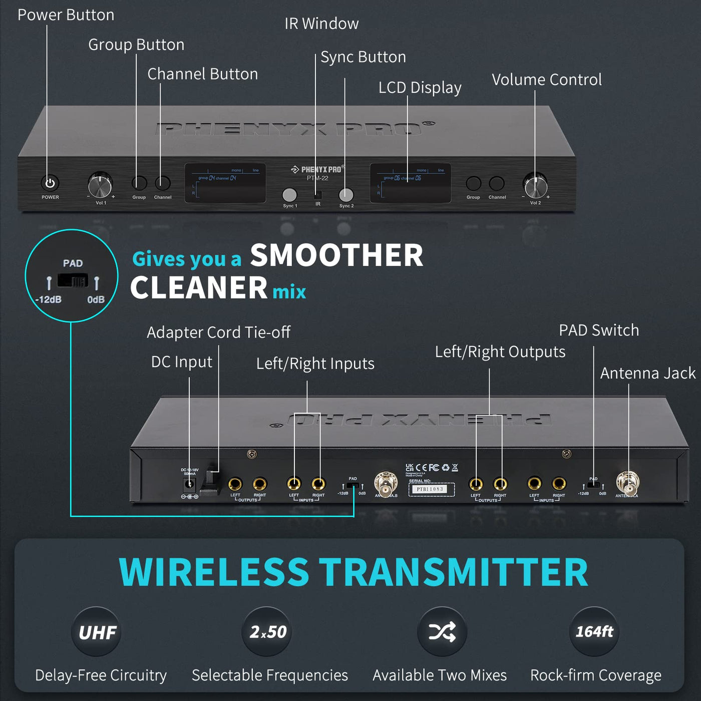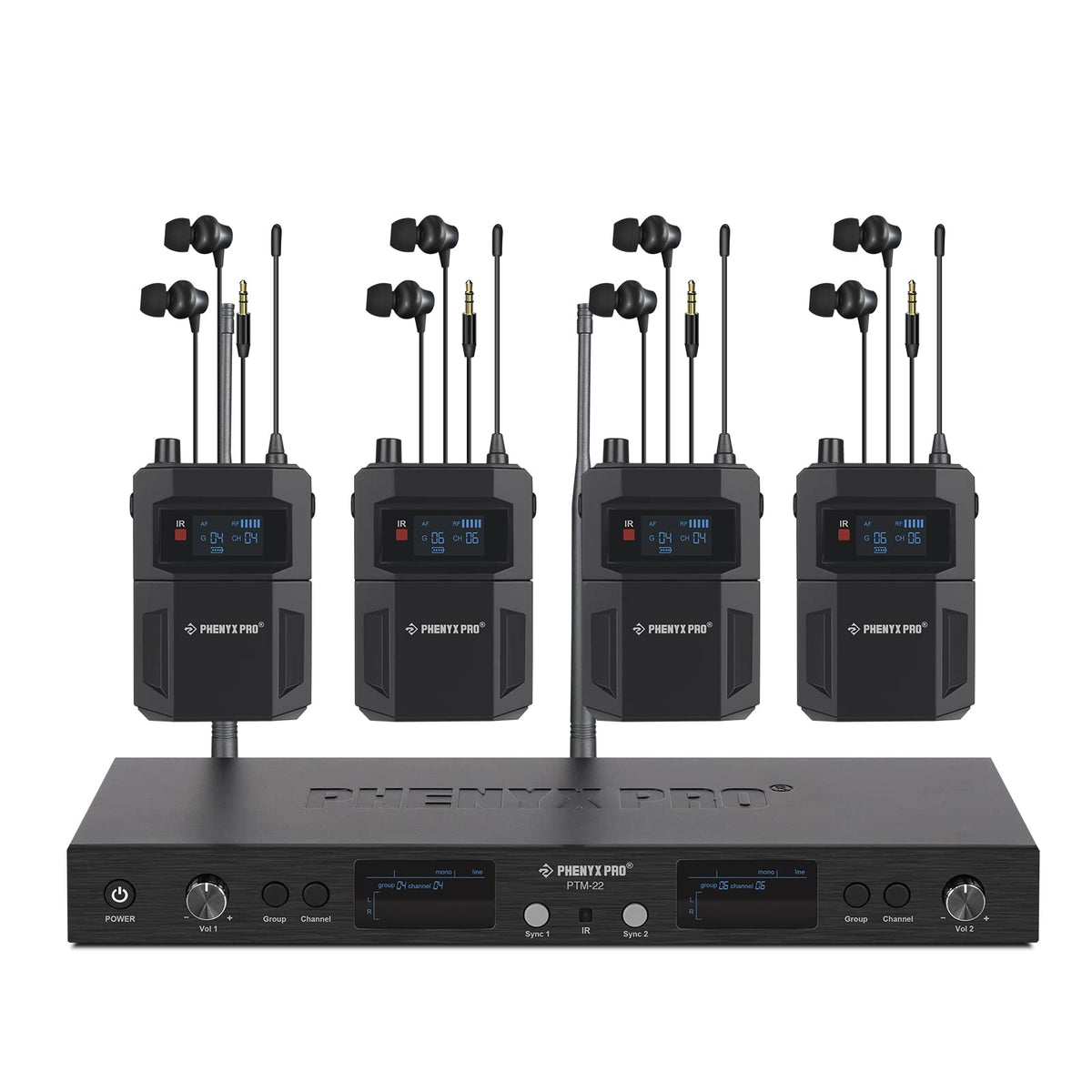 Phenyx Pro In Ear Monitor For Musicians, Uhf Wireless In Ear Monitors System, Mono 2 Channel Iem, Metal Stage Monitor W/ 2X50 Fr