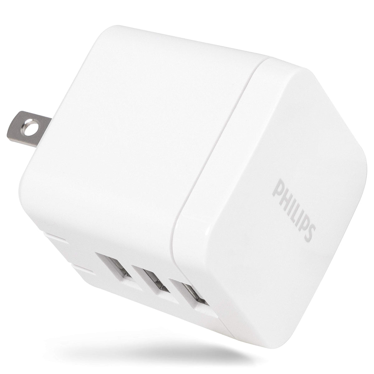 Philips 17W Usb Wall Charger, 3 Ports, For Iphone Xs/Xr/X/8, Ipad Pro/Air/Mini, Samsung Galaxy S10/S9/Plus, Google Pixel C/3/2/X