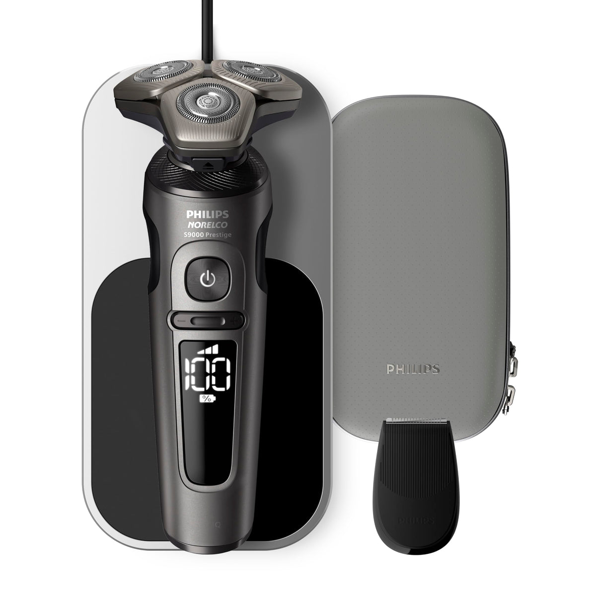 Philips Norelco S9000 Prestige Electric Shaver With Qi Charger, Precision Trimmer And Premium Case, Sp9872/86