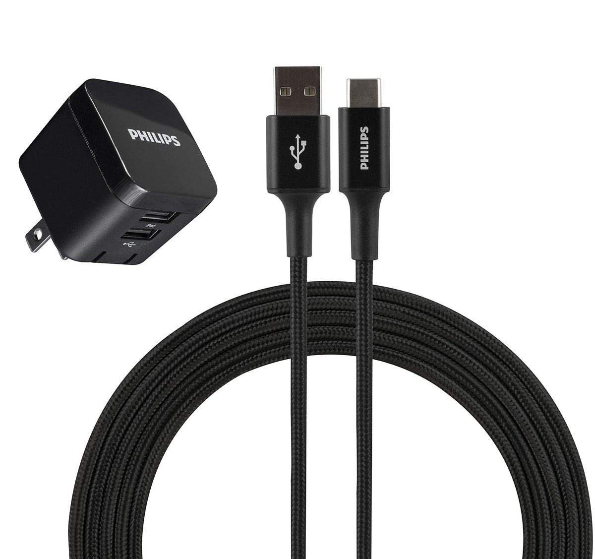 Q: Is the USB-A to USB-C cable included with the charger?A: Yes, the Philips Wall Charger Charging Kit comes with an extra-long 6ft USB-A to USB-C braided fabric cable, making it convenient to use while ensuring durability during charging.