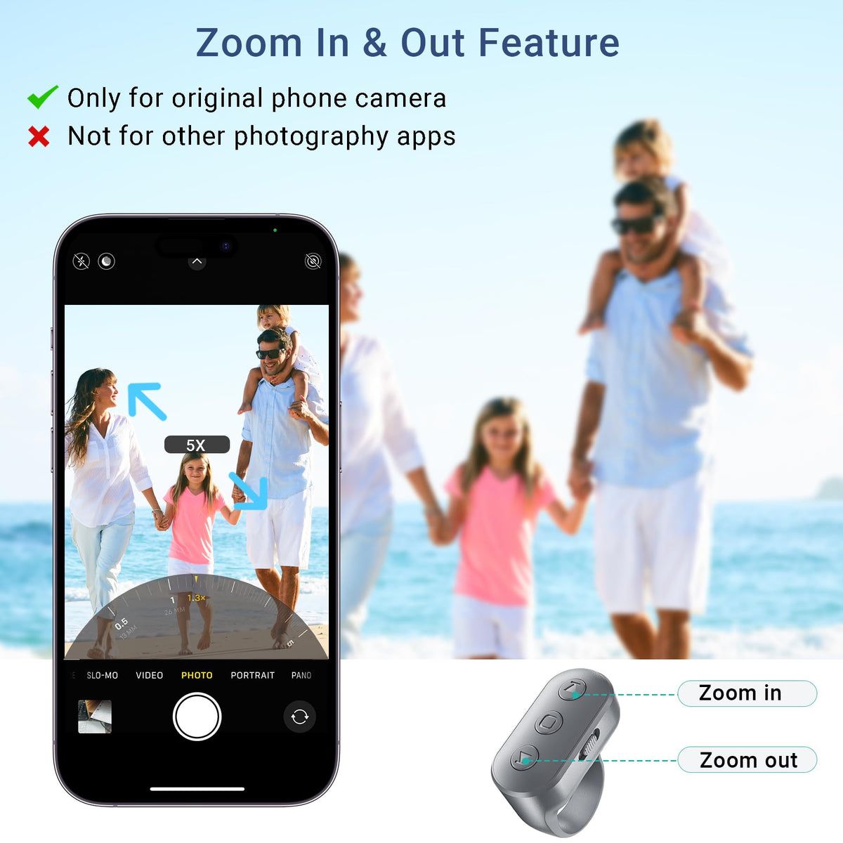 Phone Camera Ring Remote Control With Zoom In/Out, Rechargeable Shutter With Front/Rear Camera Switch For Iphone Android Ipad, Hands Free Remote Ring For Photo & Video Recording Content Creator