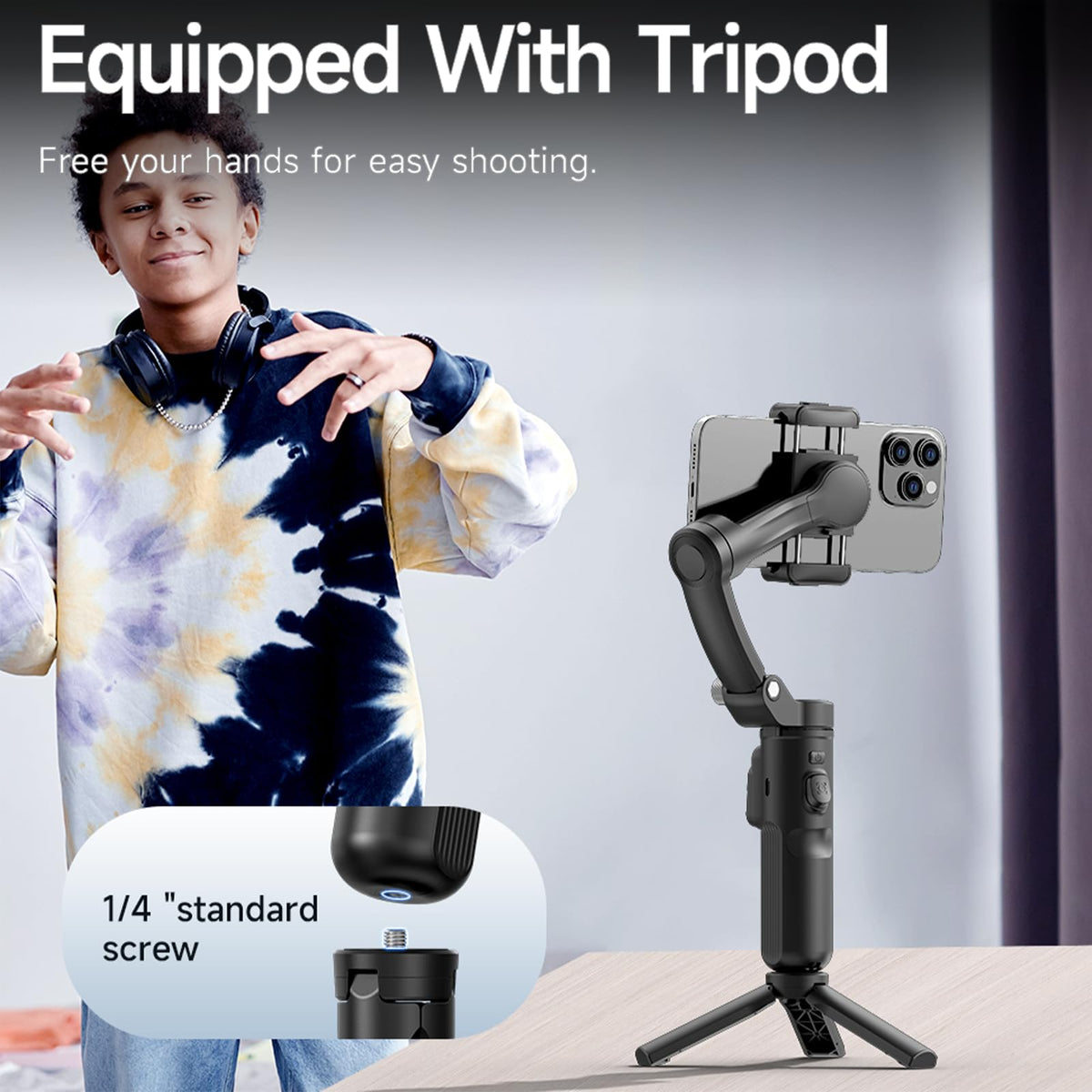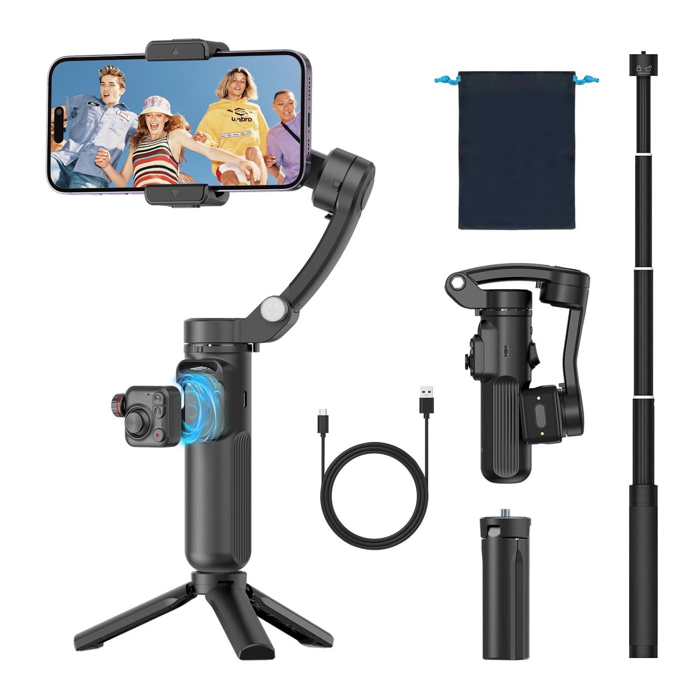 Phone Gimbal 3-Axis Foldable Stabilizer With Detachable Remote Control For Video Recording,With Extension Rod, Portable Foldable