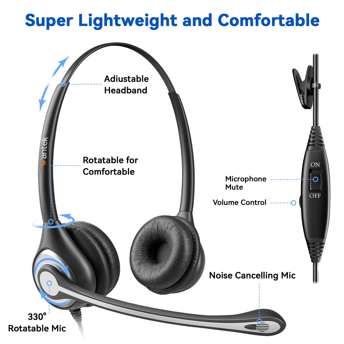 Q: What kind of comfort can I expect from wearing this headset for long periods?A: The RJ9 office phone headset is designed for all-day comfort with its lightweight build, adjustable headband, and soft leatherette ear cushions. These features enhance comfort during extended use, making it ideal for call centers and office settings.