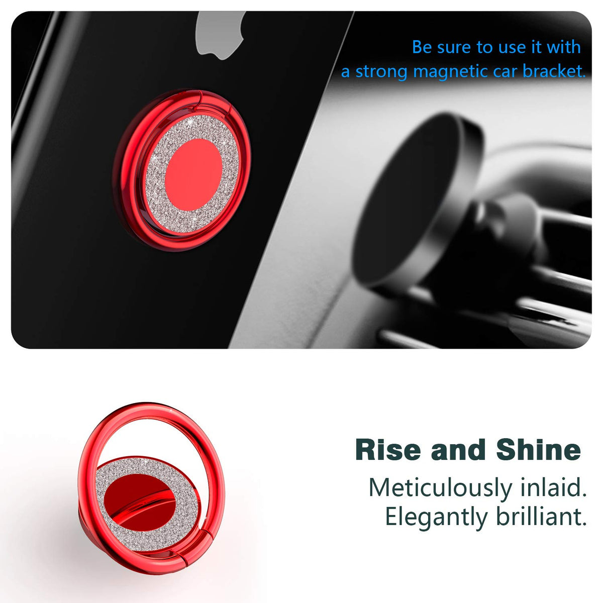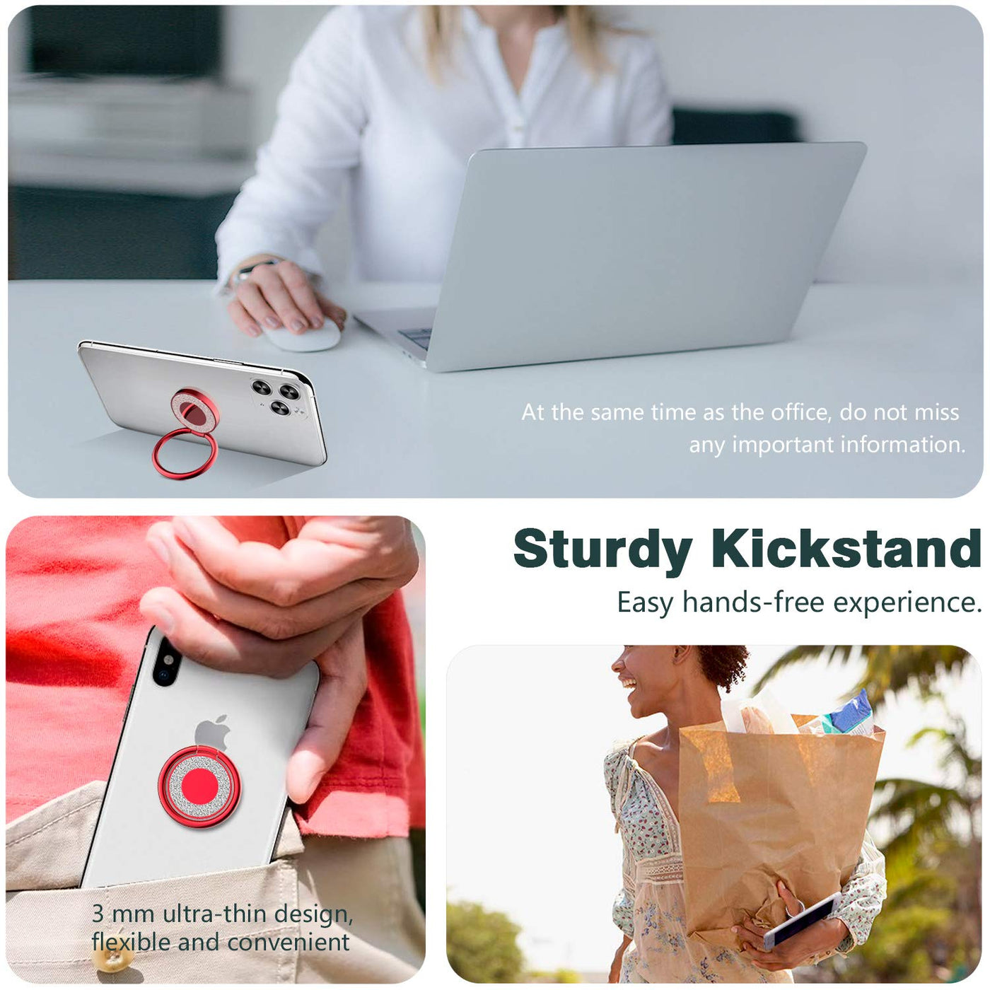 Phone Ring Holder Finger Kickstand, 360 Rotation Phone Ring Grip, Compatible With Smartphone (Red)