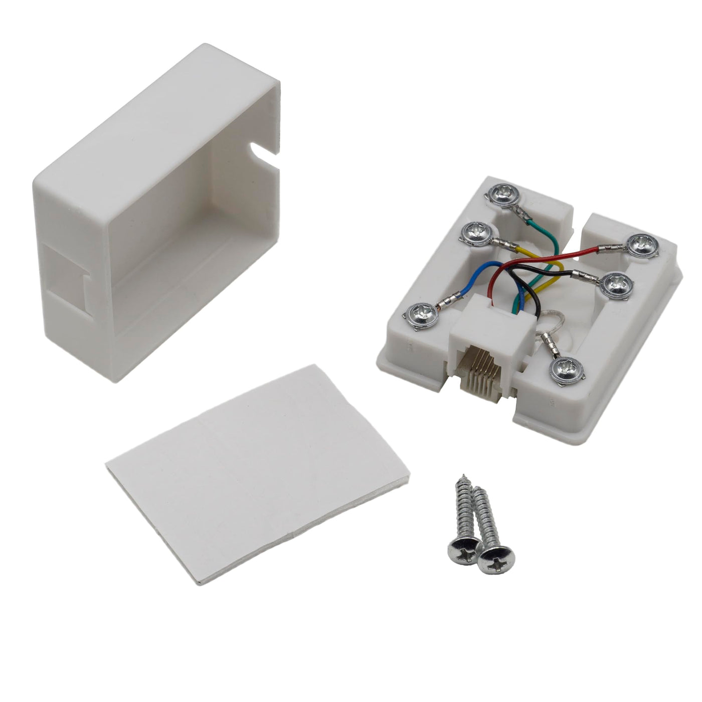 Phone Surface Mount Jack, White, Rj11 / Rj12, Single Port Telephone Jack, Data/Voice, 6P6C (6 Pin 6 Conductor), Cablewholesale