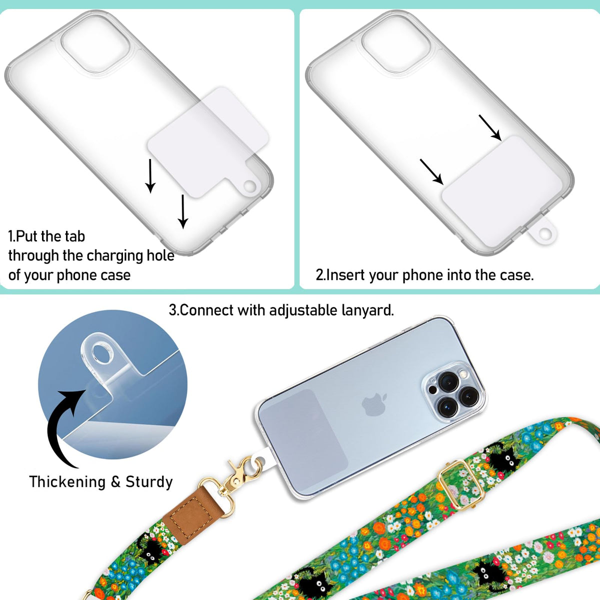 Q: Is this phone lanyard compatible with all phone cases?A: The included clear phone patches support USB charging and fingerprint sensors, ensuring compatibility with full-coverage cases. However, they may not work with half-coverage cases.