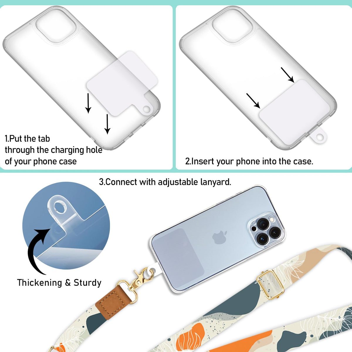 Q: Can I charge my phone while using this lanyard?A: Yes, the phone lanyard comes with two clear phone patches that support USB charging and fingerprint access without blocking the camera port.