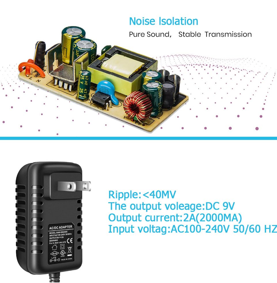 Pigtone Guitar Pedal Power Supply Adapter 9V Dc 2A Tip Negative 8 Way Daisy Chain Cables For Guitar Effect Pedal,Compatible For