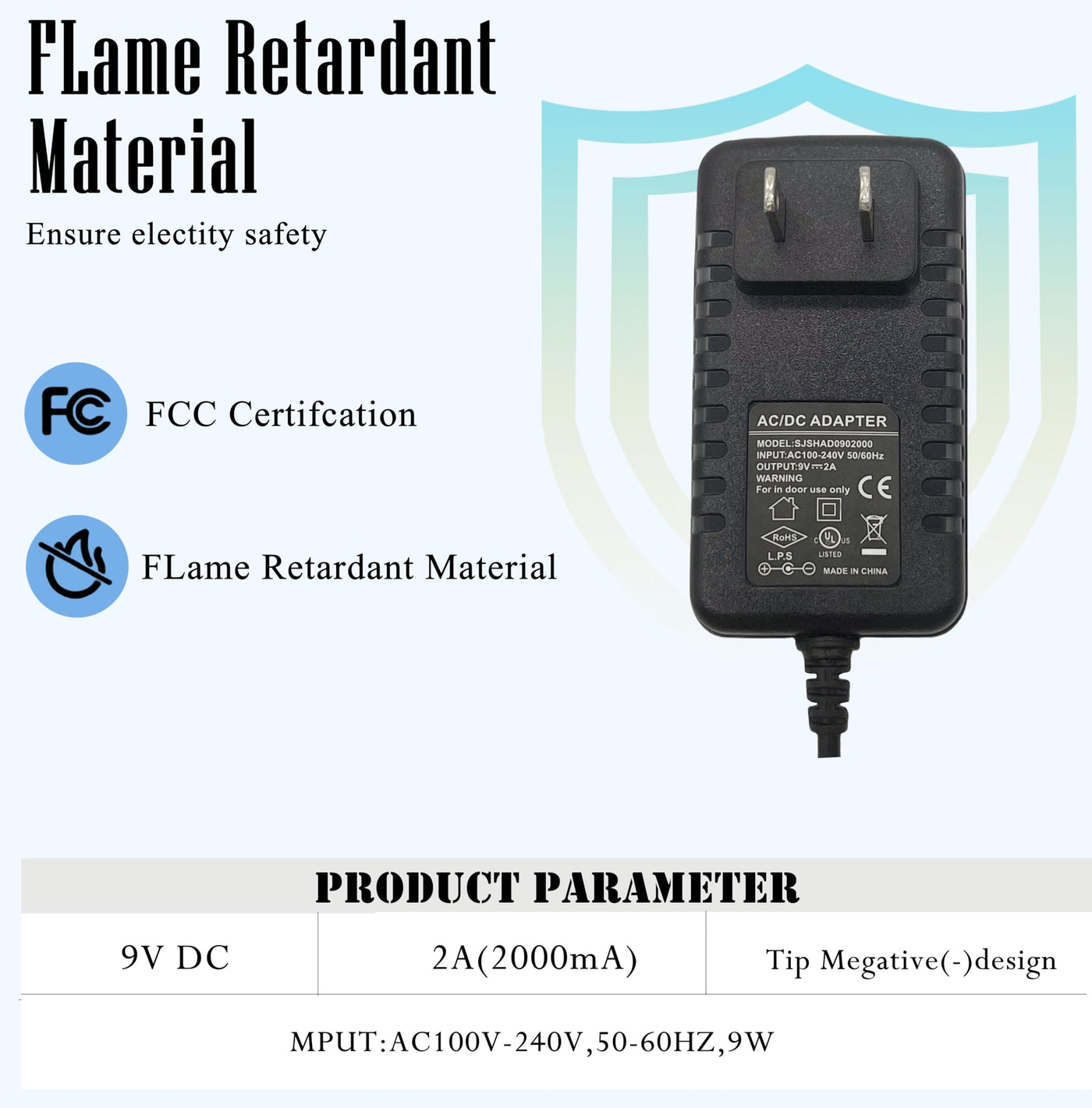 Product Parameters: Name: Guitar Effect Pedal Adapter Place Of Origin: Guangdong, China Model: Sjsad1209010 1To8 Purpose: Guitar Effect Pedal Type: Power Adapter Plug Standard: United States Output Voltage: Dc 9V Output Current: 2A (2000Ma) Pulsation:
