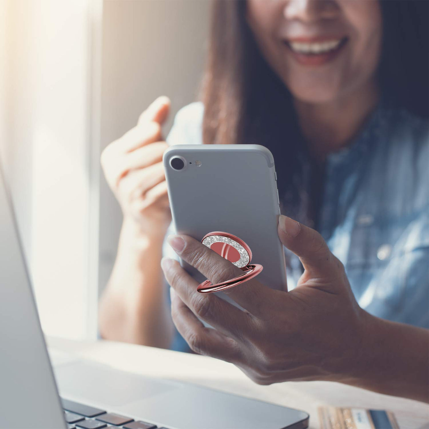 Pikabo Cell Phone Ring Holder Stand, Cell Phone Grip Holder, Adhesive Phone Grip For Phones And Cases. (Glitter Rose Gold)