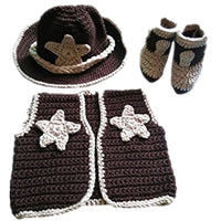 Pinbo Newborn Baby Boys Photo Prop Crochet Cowboy Set Hat Vest Boots Costume