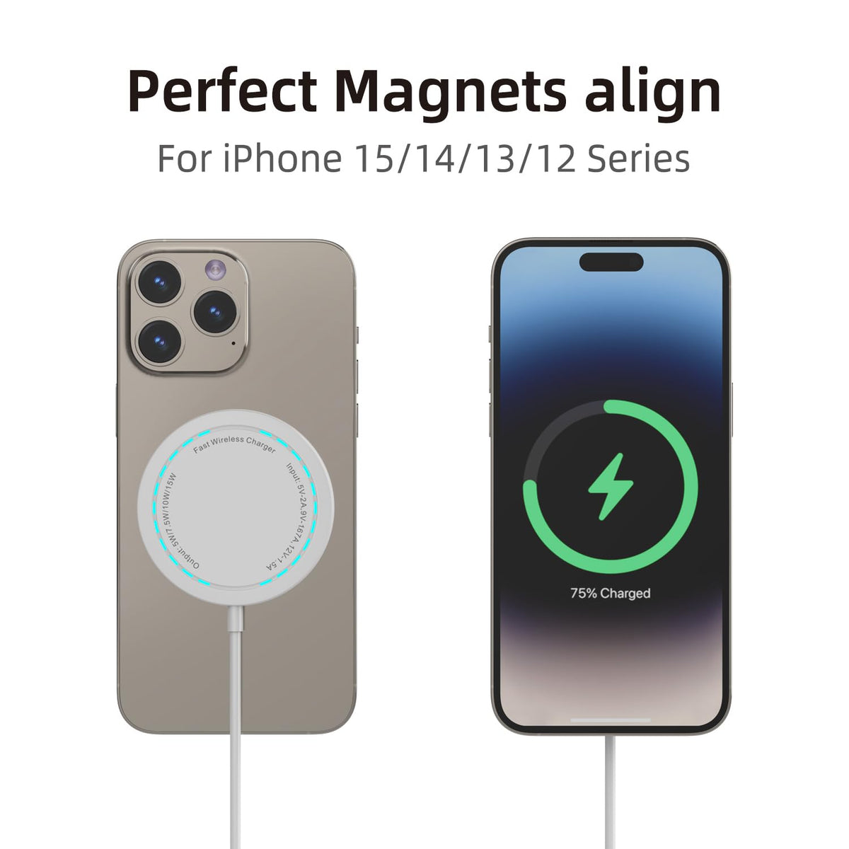 Pinruige Wireless Charger, 15W Max Fast Magnetic Wireless Charging Pad Compatible With Iphone 15/14/13/12 With Usb A Converter W
