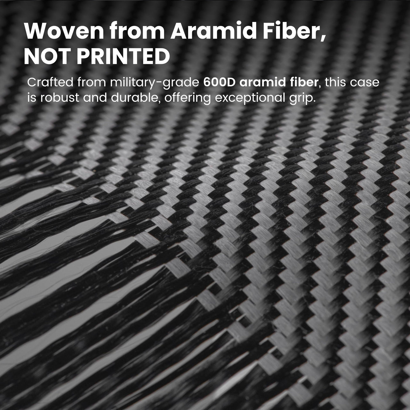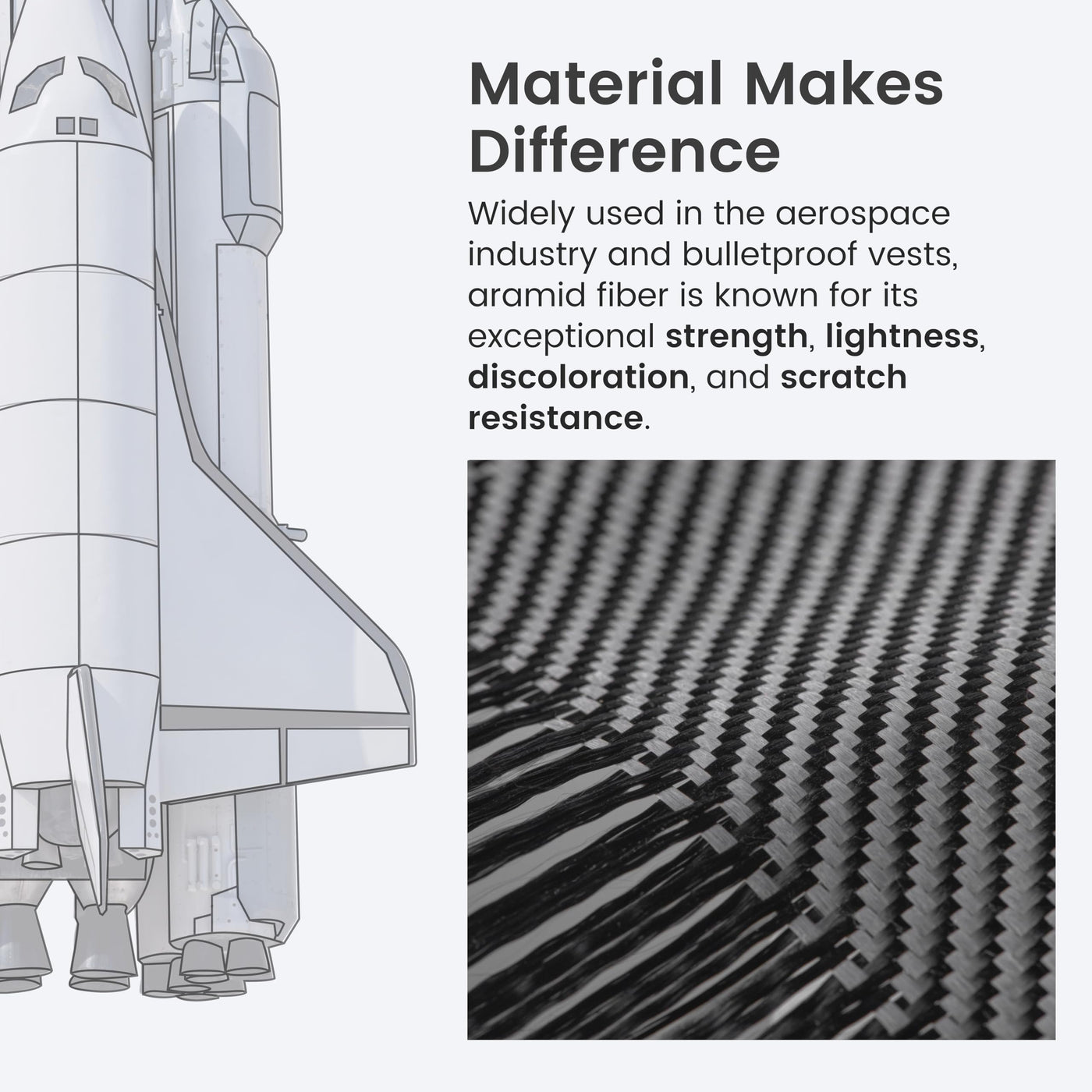 Q: What materials are used in the PITAKA iPhone 16 Pro Max case?A: The case is made from high-quality aramid fiber, which is known for its strength and lightness. This material is commonly used in aerospace and military applications, providing excellent protection against scratches, corrosion, and discoloration.