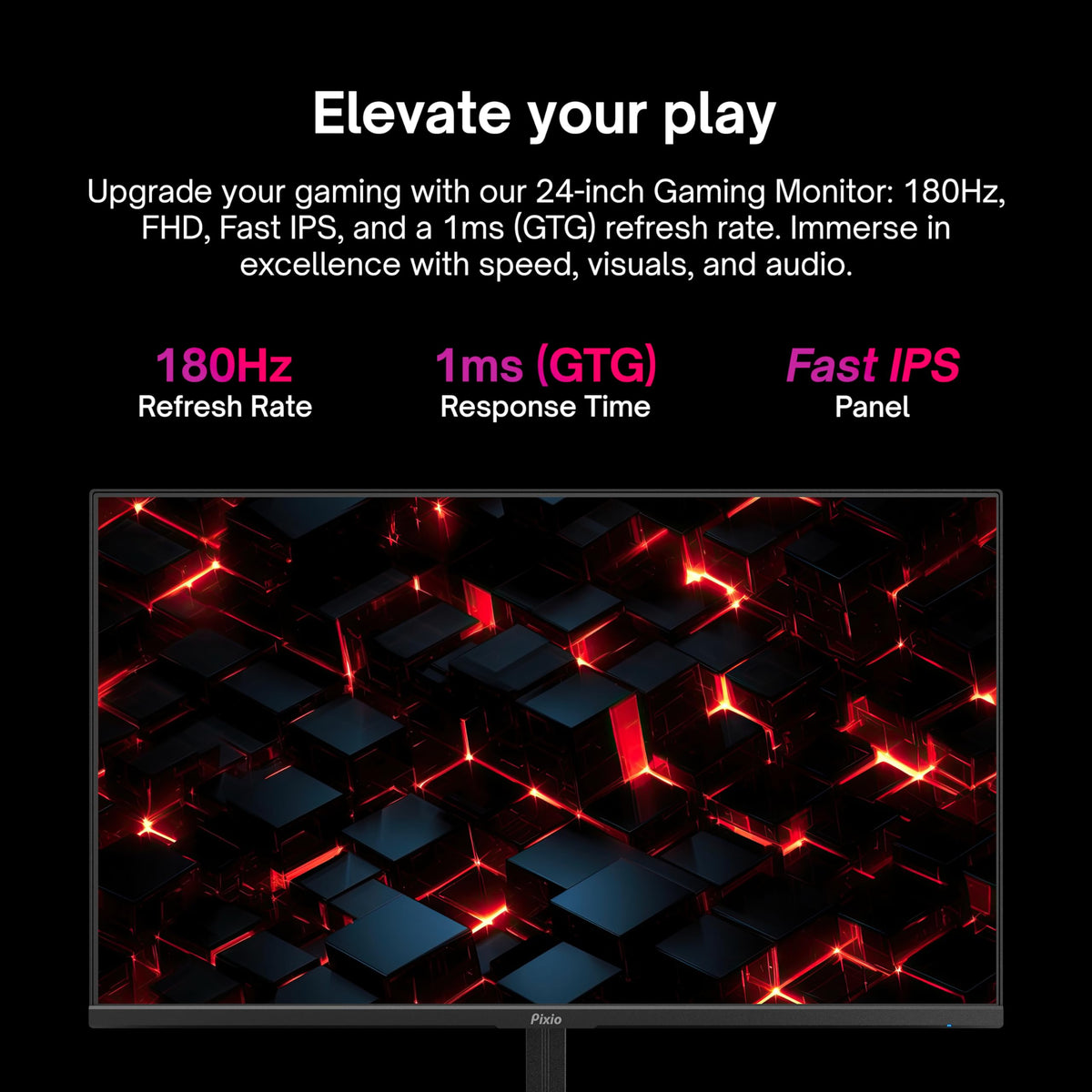 Pixio Px248 Prime V2 24 Inch 180Hz Refresh Rate Fhd 1080P Resolution Fast Ips Panel 1Ms Gtg Response Time Adaptive Sync Led Gaming Monitor