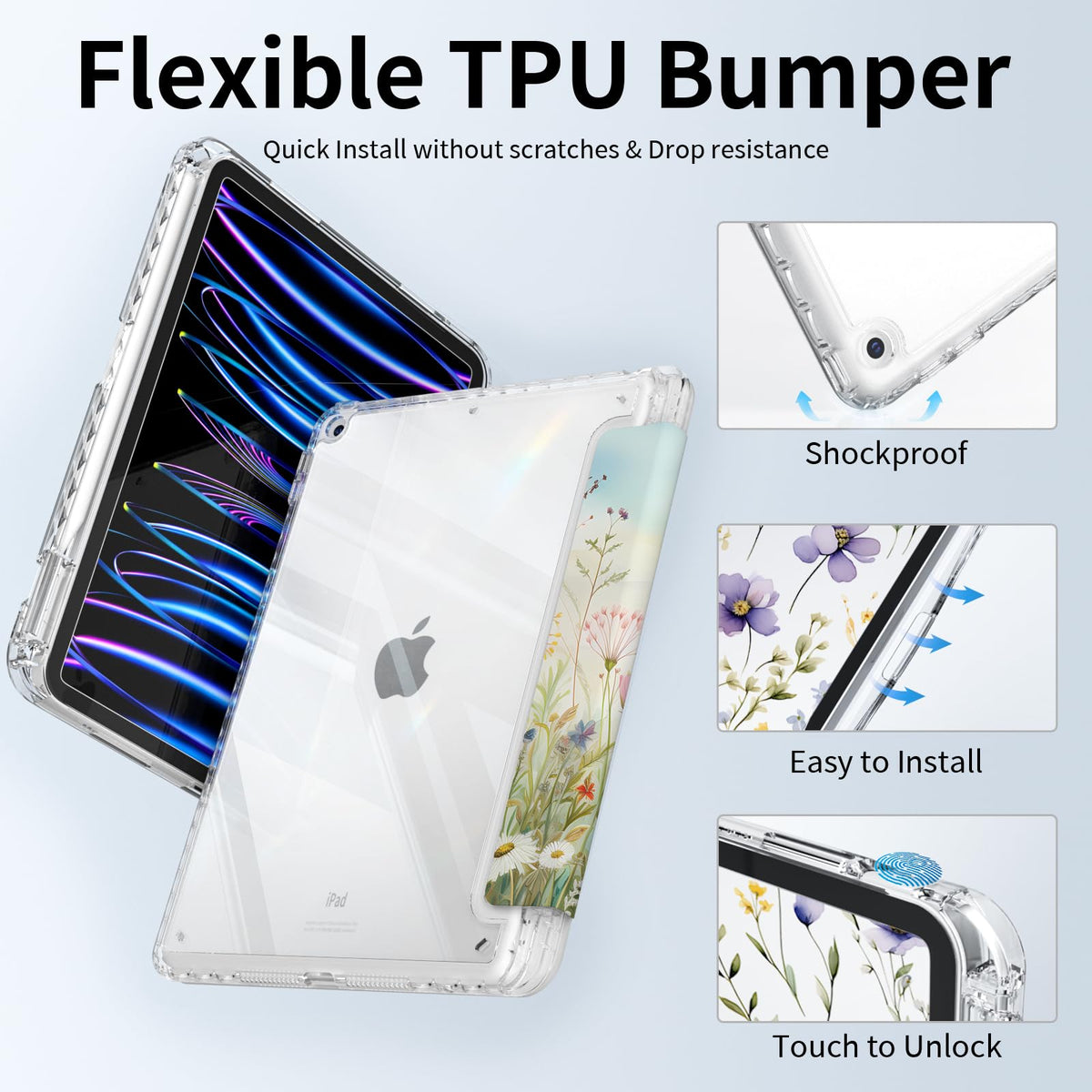 Piznernico Slim Trifold Case For Ipad 9Th/8Th/7Th Generation, Ipad Case 10.2 Inch 2021/2020/2019 With Pencil Holder, Shockproof