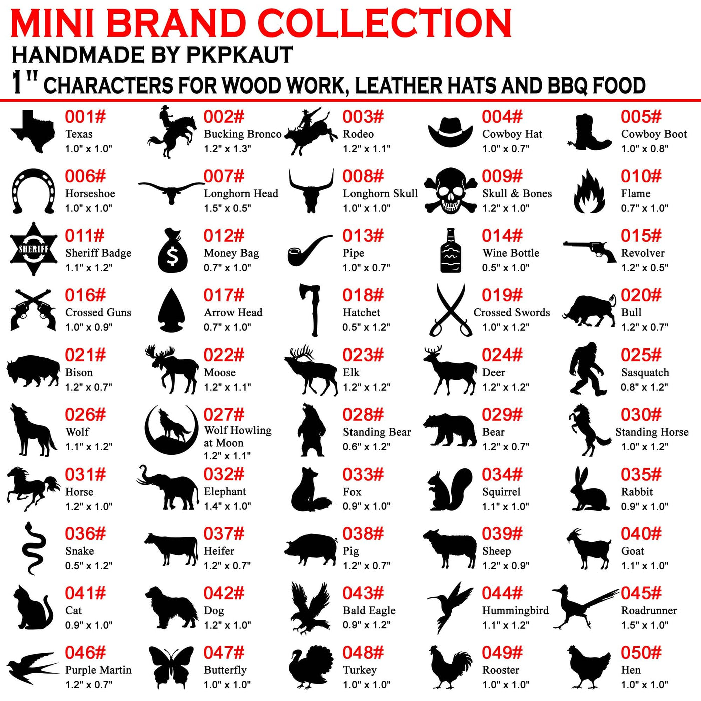 Pkpkaut Assorted Characters Custom Wood Branding Iron Personalized For Wood Working, Leather Hats, Steak, Bbq Brander & Bread Logo, Personalized Steak Branding Iron For Food With Gift Box (12'' Hand-Forged Handle)