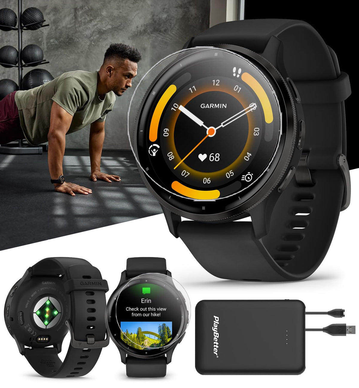 Playbetter Garmin Venu 3 (Slate/Black) Fitness Gps Smartwatch Bundle - Amoled Touchscreen, 10 Days Battery, Sleep & Recovery - I