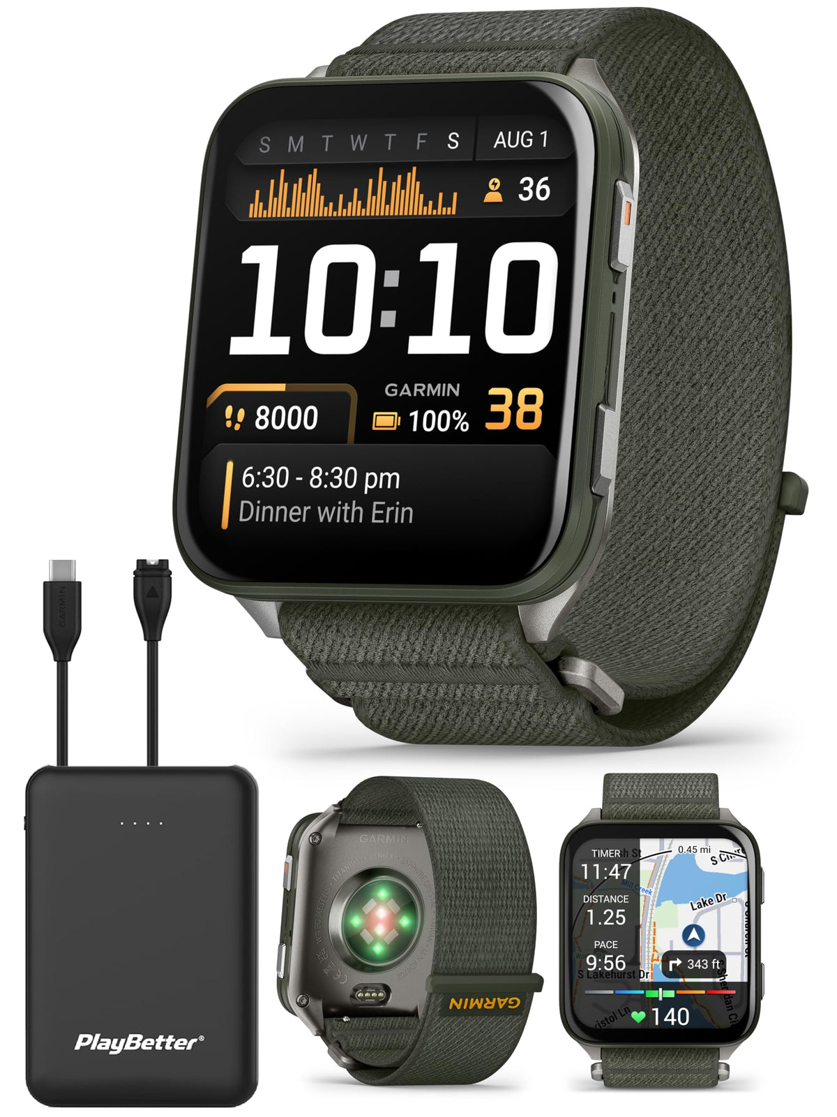Playbetter Garmin Venu X1 (Moss/Titanium) Fitness Gps Smartwatch Bundle - 2 Thin & Lightweight Amoled Display, Advanced Health A