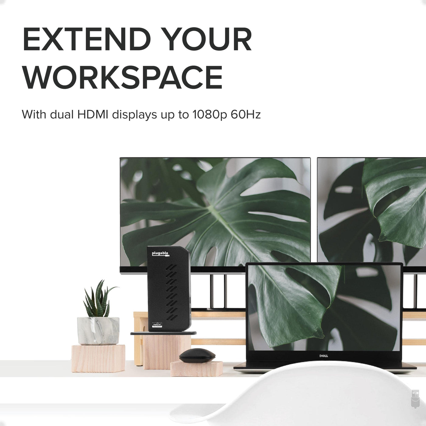 Plugable Usb 3.0 And Usb-C Universal Laptop Docking Station With 2 Hdmi Ports For Windows, Mac, And Chromeos (Gigabit Ethernet,