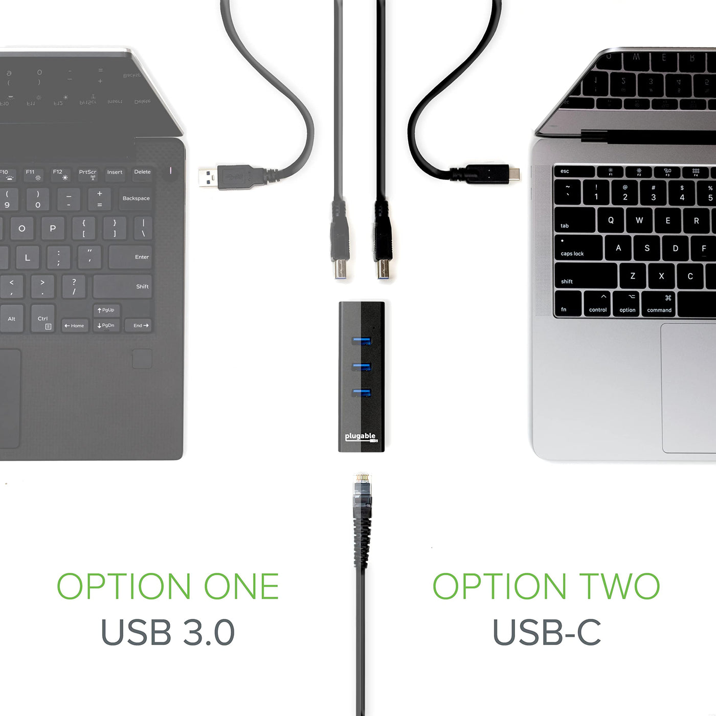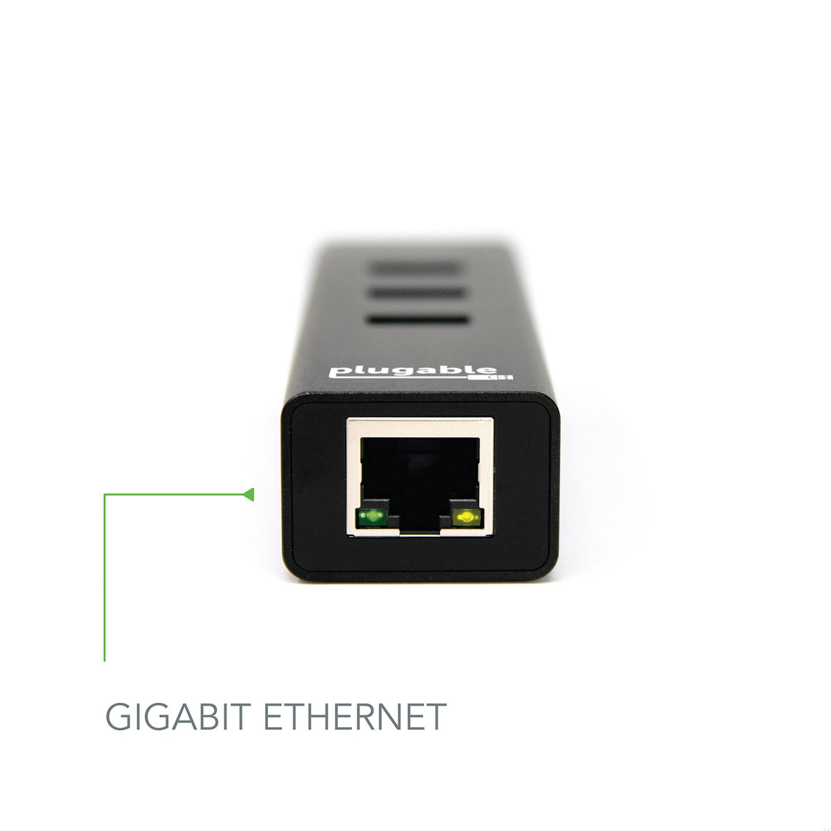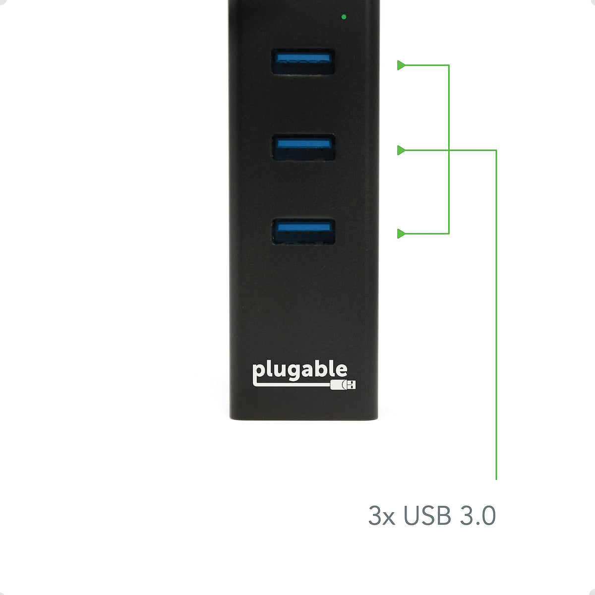 Plugable Usb Hub With Ethernet, 3 Port Usb 3.0 Bus Powered Hub With Gigabit Ethernet Compatible With Windows, Macbook, Linux, Ch