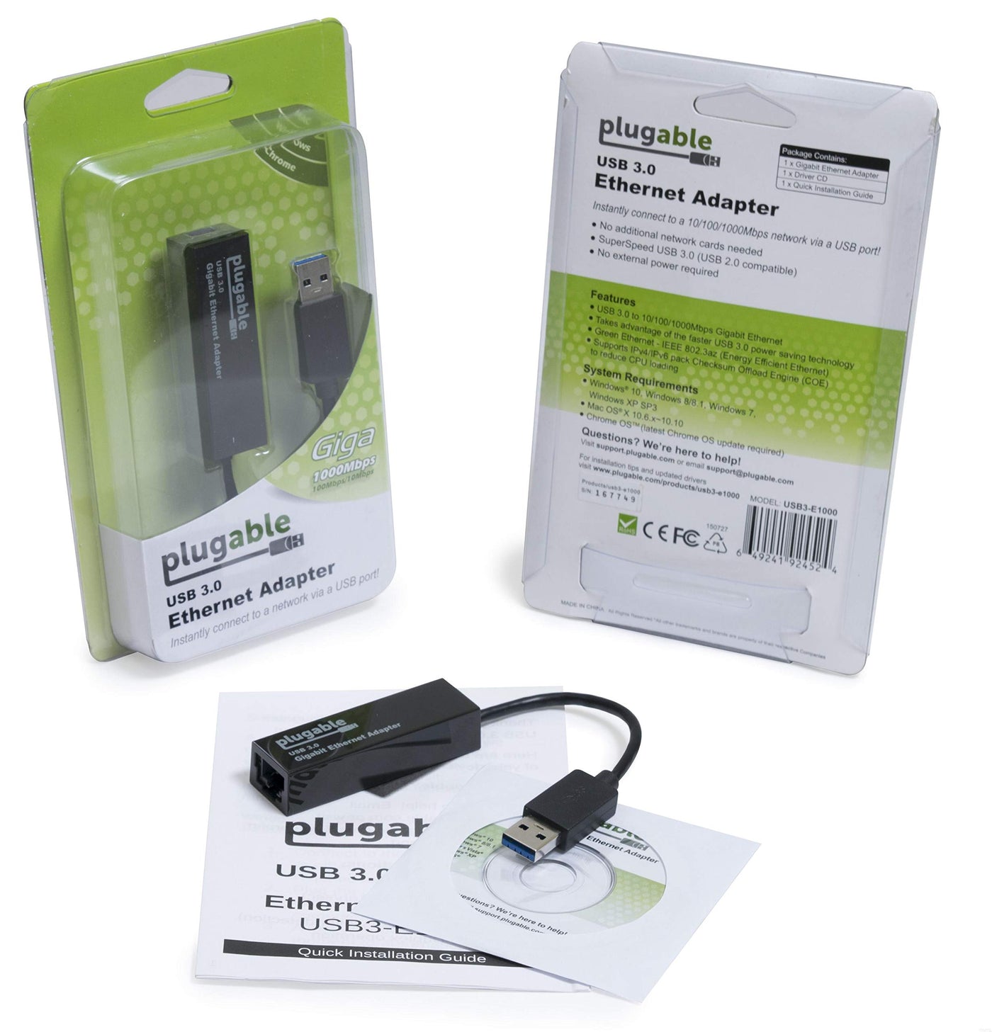 The Plugable Usb3-E1000 Is An Easy Way To Gain Wired Gigabit Network Speeds For Faster Hd Video Streaming, Gaming, Web Browsing, Network Storage And More. Common For This Usb Lan Adapter Uses Include Adding Wired Gigabit Network Support To Laptops, Ultrabooks, Or Notebooks With No Ethernet Connection, Or Replacing Or Upgrading Network Adapters In Desktop Pcs. In Addition To Being A Compatible Switch Ethernet Adapter. Usb Network Adapters Can Improve Speeds Vs. Older 10/100 Adapters And Wireless Networks. Also Useful For Adding Network Interfaces, And Transferring Files Peer-To-Peer Over Ethernet. This Product Is Not A Solution For Connecting A Usb Device Like A Printer To A Network. Performance Plug The Ethernet To Usb Adapter Into Any Laptop Or Desktop Currently Limited To 10/100 Ethernet, And Benefit From Faster Transfers On Your Gigabit Ethernet Network. Usb 3.0 Systems Support Theoretical Speeds Up To 5Gbps And Usb 2.0 Supports Up To 480Mbps. In Practice, Most Machines Will See Up To A Doubling Of Network Speed By Moving From 100Mbps Fast Ethernet To 1000Mbps Gigabit Ethernet Via Usb 2.0, And Could See More Than Twice That Gain On Usb 3.0. Also Works On 10/100 Ethernet Networks At Their Native Speeds. Not Supported With Macos 10.15 Catalina And Newer Drivers Microsoft Signed 32/64-Bit Drivers For Windows 11, 10, 8.1, 8, 7, Vista, And Xp. Not Compatible With Arm-Based Windows Rt Systems (Ms Surface, Asus Asus Vivotab Rt). Linux Kernels 3.9 And Later Includes Driver (3.8 And Earlier Require Rebuild Of Kernel Module From Source). Not Compatible With Android Tablets, Tivo Series 2, Wii Or Other Non-Pc/Mac Platforms. See The Plugable Usb2-E100 For An Adapter Compatible With These.