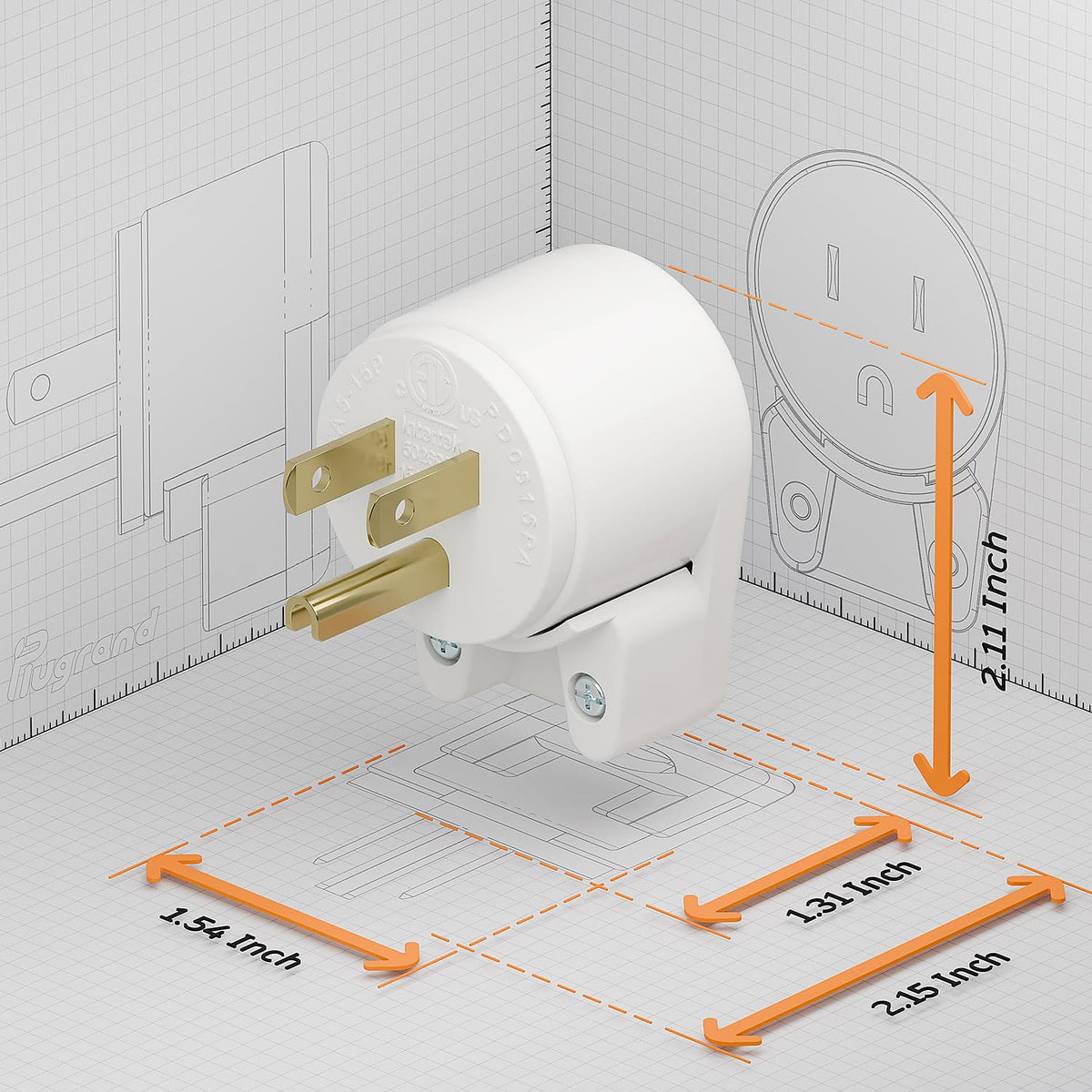 Plugrand 12 Direction Adjustable Nema 5 15P Right Angle Plug 15A, 125V, White, Etl Verified