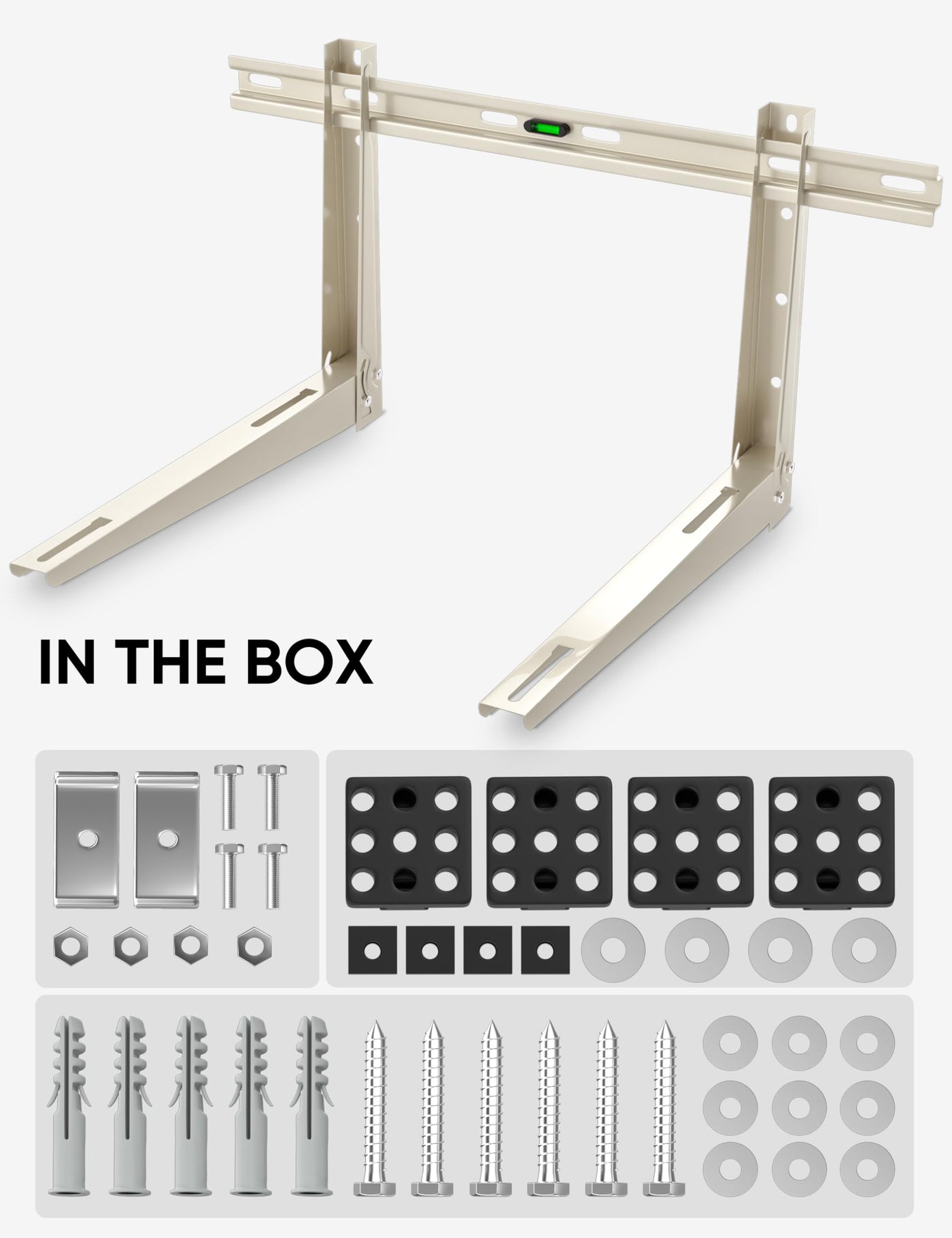 Q: How does this bracket protect my mini split system?A: By elevating your mini split air conditioner above ground level, the Plusluck bracket protects against dirt, snow, floods, and vandalism. Additionally, the included bolts and anti-vibration pads enhance stability and minimize sound transmission.