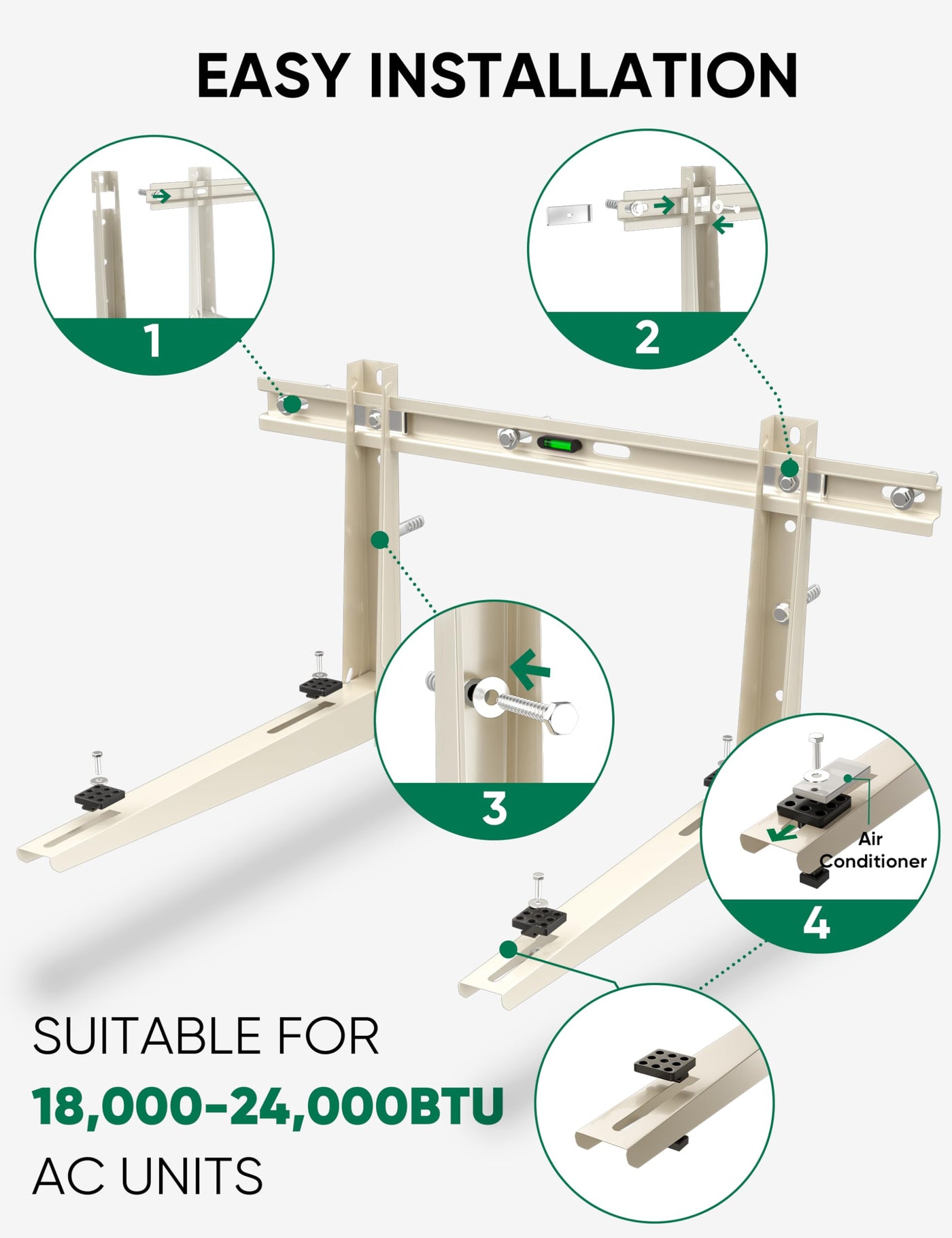 Plusluck Mini Split Wall Mounting Bracket For 18000-24000 Btu Mini Split Air Conditioner With Leveler Universal Ductless Ac And Heat Pump Systems Outdoor