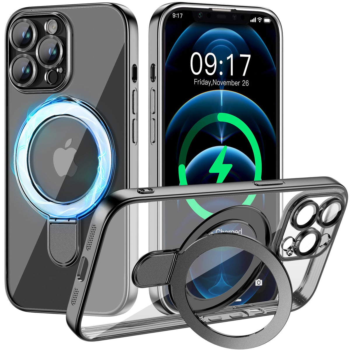 It'S Only Designed Specifically For Iphone 12 Pro 6.1 Inch, With Precise Cutouts For Easy Access To All Buttons, Speakers, Cameras And Charger Slot. The Buttom Upgrade Protection Of Built-In Dustproof Net.&Nbsp;The Back Is Made Of High-Quality Tpu Material, Which Never Yellowing. This Case Combined The Strong Magnetic Technology With A Foldable Stand Which Compatible With All Magsafe Accessories. It Simply Morphs Into A Robust Phone Holder And Folds Back Into An Invisible State.It Can Be Quite Useful When Working, Cooking, Or Watching A Tv Show. Iphone 12 Pro Case Comes With Full Camera Protection, No Need To Install It Yourself. It Can Protect The Camera From Drops, Scratches, And Bumps. Covers The Lens While Avoiding Dust Accumulation, Keeping The Camera'S Original Shooting Impact.&Nbsp;The Edge, Camera, And Magnetic Ring Are All Electroplated To Keep A Bright, Metallic Appearance That Never Fades Or Peels. The Electroplated Part Can Provide Original Phone Feel And Comfortable Grip. The Case Is Light And Soft, Not Adding Too Much Weight To The Phone. It Can Easily Slide Into The Pocket Without Being Bulky, And The Phone Will Not Be Damaged After Disassembly.